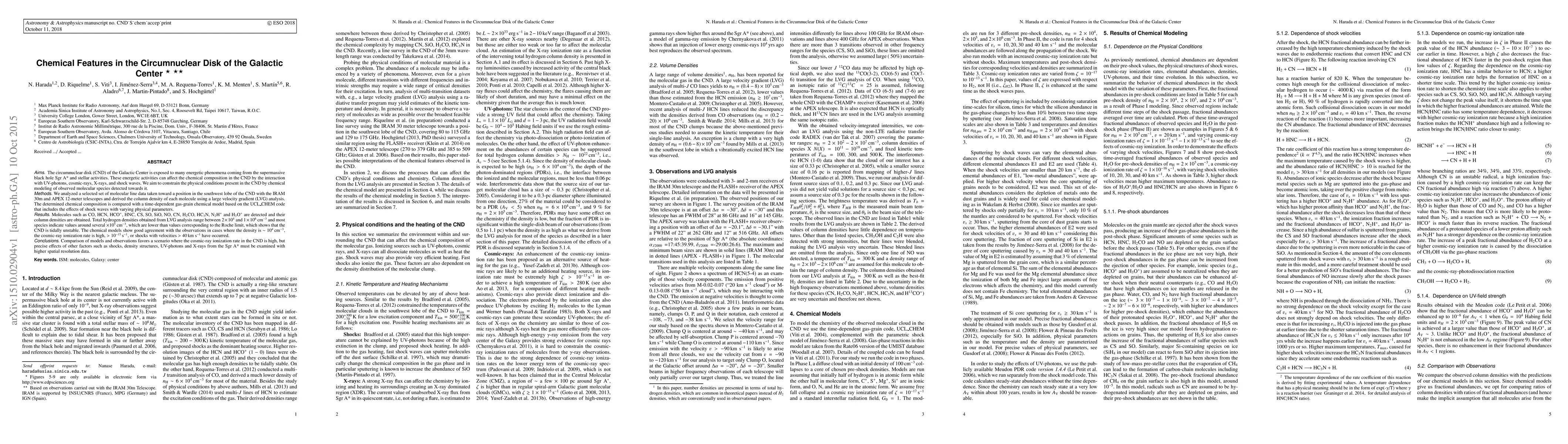 Researchers analyzed molecular line data to understand the chemical composition of the Galactic Center's circumnuclear disk, finding that high cosmic-ray ionization rates and shock waves may shape its chemistry.