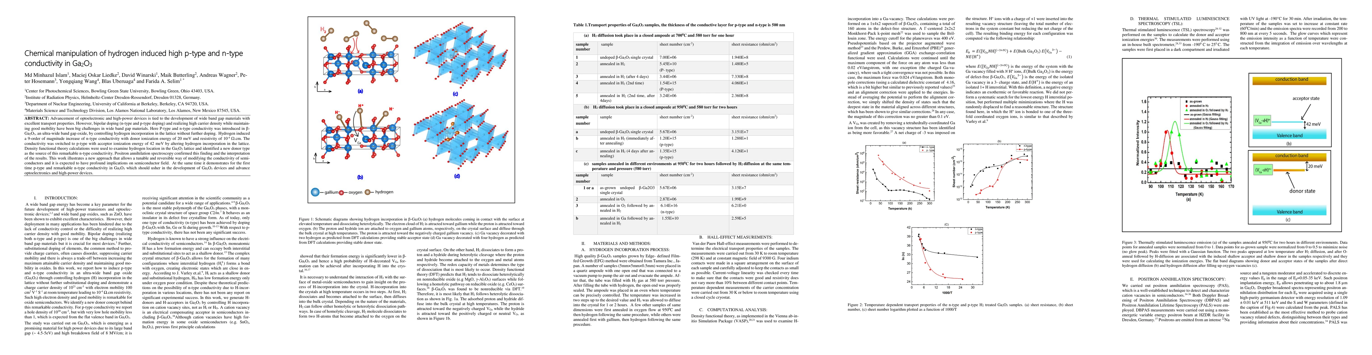 This paper demonstrates the chemical manipulation of hydrogen to achieve high p-type and n-type conductivity in beta-Ga2O3, an ultra-wide band gap oxide, without additional doping. The study shows a 9-order of magnitude increase in n-type conductivity and introduces a new donor type, while also switching to p-type conductivity by altering hydrogen incorporation.
