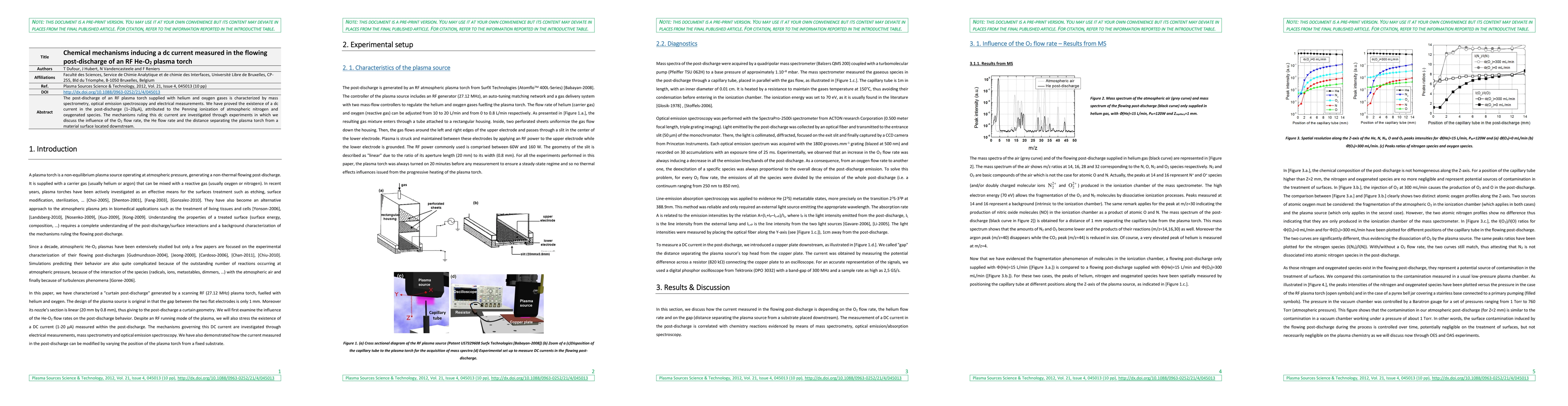 This study investigates the dc current in the post-discharge of an RF He-O2 plasma torch, attributing it to Penning ionization of atmospheric nitrogen and oxygenated species. Experiments analyze the impact of varying O2 and He flow rates and the torch-to-surface distance on these chemical mechanisms.