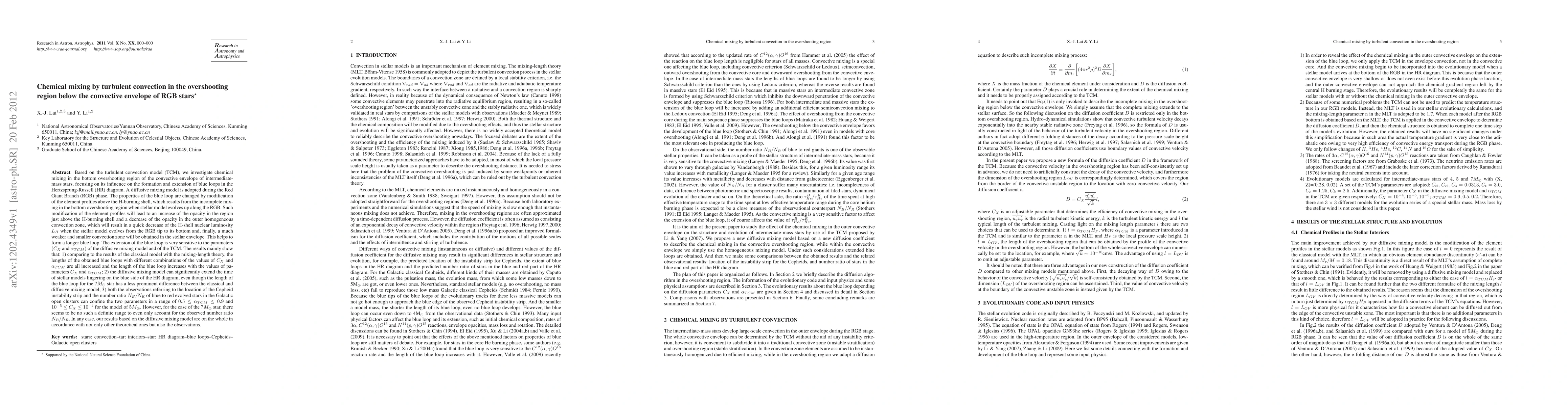 Research investigates chemical mixing in RGB stars' convective envelopes, finding that incomplete mixing can lead to longer blue loops on the Hertzsprung-Russell diagram, with parameters influencing mixing effects.