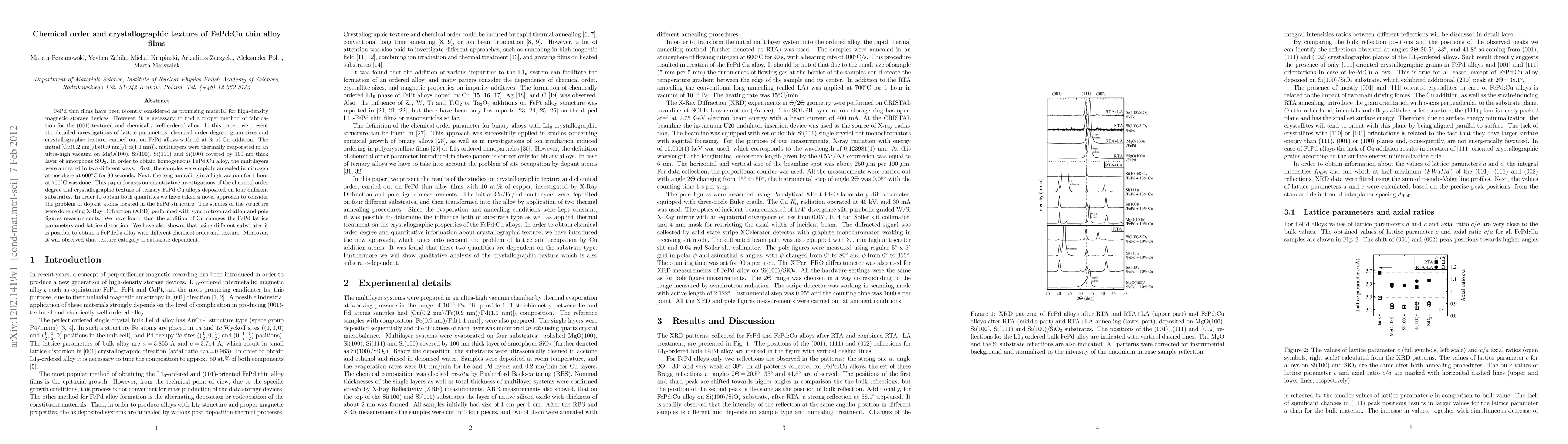 This study investigates the chemical order degree and crystallographic texture of FePd:Cu thin alloy films deposited on different substrates, revealing substrate-dependent variations in these properties.