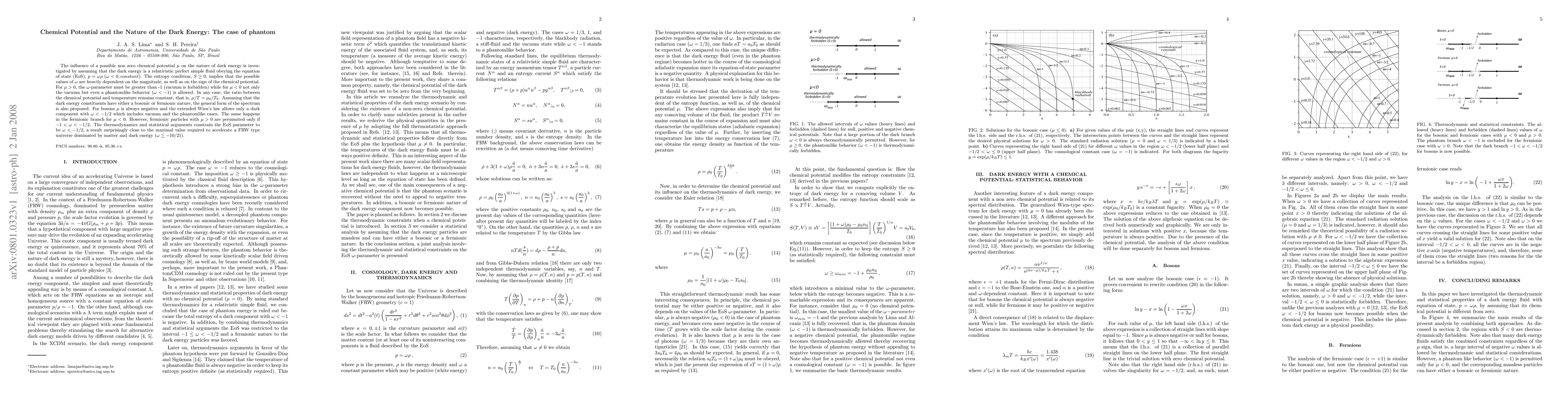 Research investigates how a chemical potential affects dark energy's nature, finding that it can lead to vacuum or phantom-like behavior depending on its sign, with implications for the universe's acceleration.