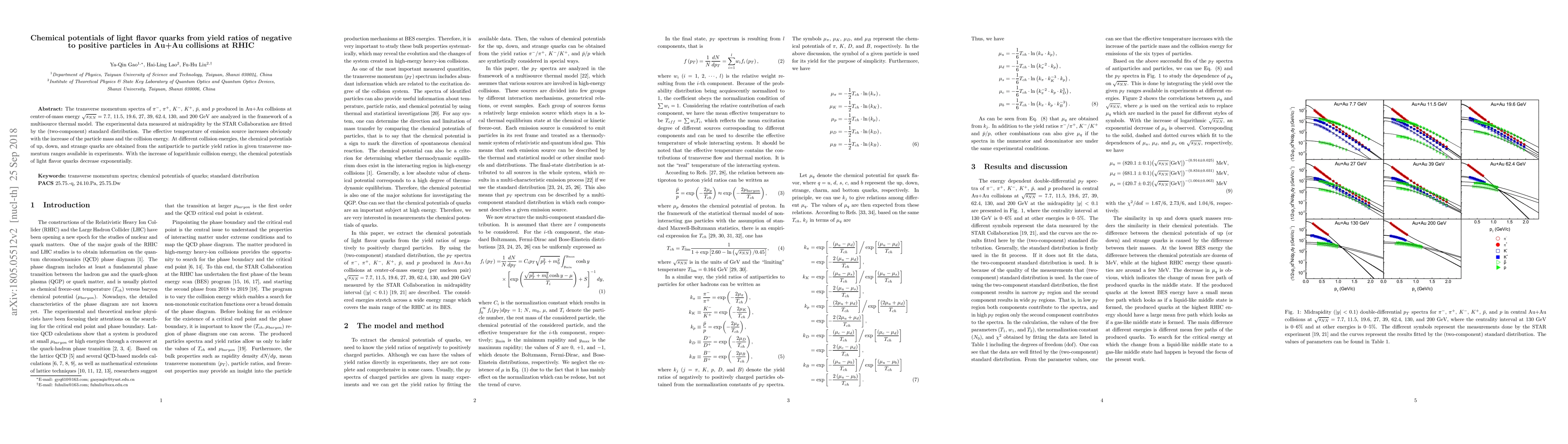 This paper investigates the chemical potentials of light flavor quarks derived from the yield ratios of negative to positive particles in Au+Au collisions at various RHIC energies. The analysis, using a multisource thermal model, shows that the chemical potentials of up, down, and strange quarks decrease exponentially with increasing collision energy.