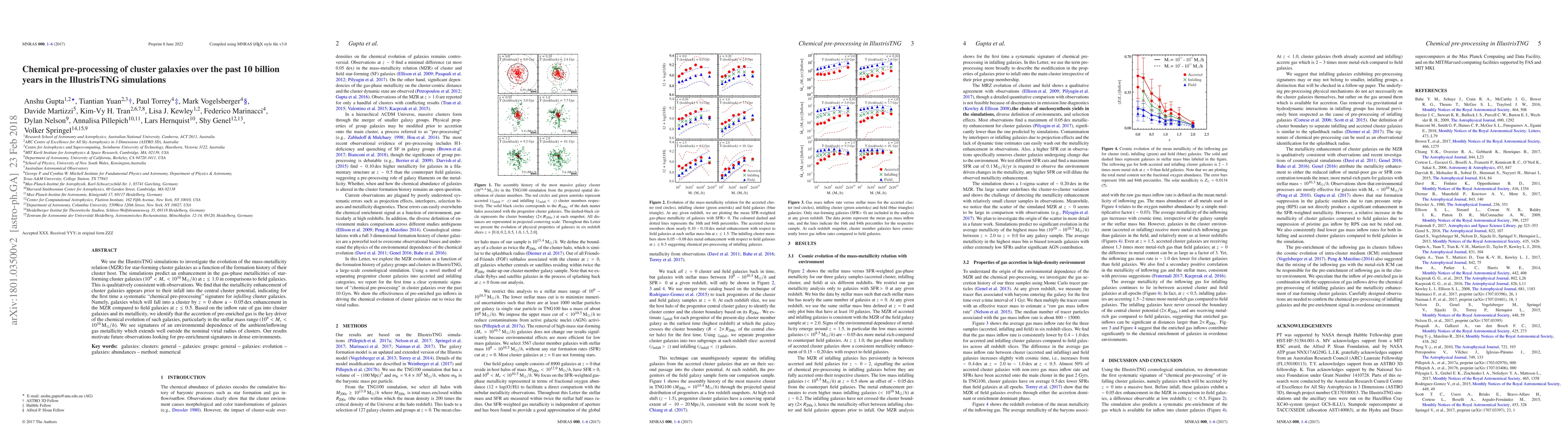 The IllustrisTNG simulations reveal that star-forming cluster galaxies exhibit enhanced gas-phase metallicities compared to field galaxies, indicating a systematic "chemical pre-processing" prior to their infall into clusters. The key driver of this enhancement is the accretion of pre-enriched gas, suggesting an environmental dependence extending beyond the cluster's virial radius.