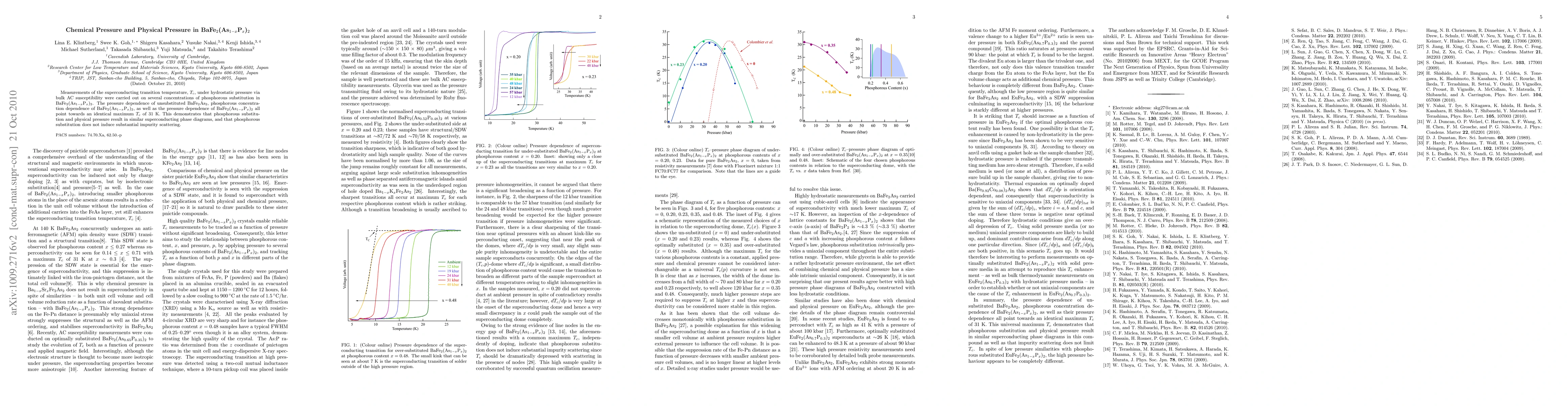 Measurements of the superconducting transition temperature, T_c, under hydrostatic pressure via bulk AC susceptibility were carried out on several concentrations of phosphorous substitution in BaFe_2(As_{1-x}P_x)_2. The pressure dependence of unsubstituted BaFe_2As_2, phosphorous concentration dependence of BaFe_2(As_{1-x}P_x)_2, as well as the pressure dependence of BaFe_2(As_{1-x}P_x)_2 all point towards an identical maximum T_c of 31 K. This demonstrates that phosphorous substitution and physical pressure result in similar superconducting phase diagrams, and that phosphorous substitution does not induce substantial impurity scattering.