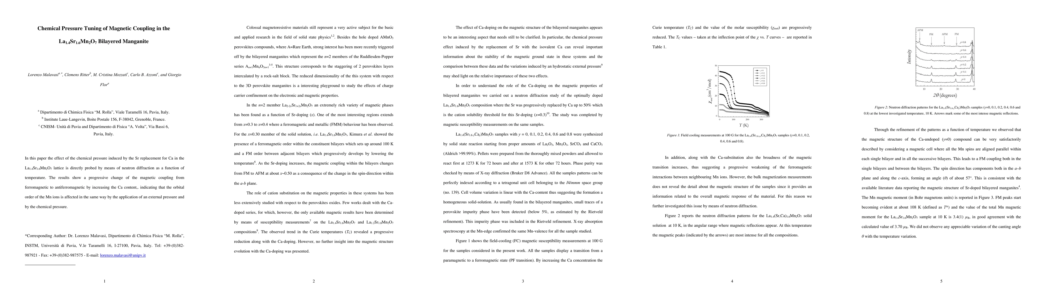 In this paper the effect of the chemical pressure induced by the Sr replacement for Ca in the La1.4Sr1.6Mn2O7 lattice is directly probed by means of neutron diffraction as a function of temperature. The results show a progressive change of the magnetic coupling from ferromagnetic to antiferromagnetic by increasing the Ca content,. indicating that the orbital order of the Mn ions is affected in the same way by the application of an external pressure and by the chemical pressure.