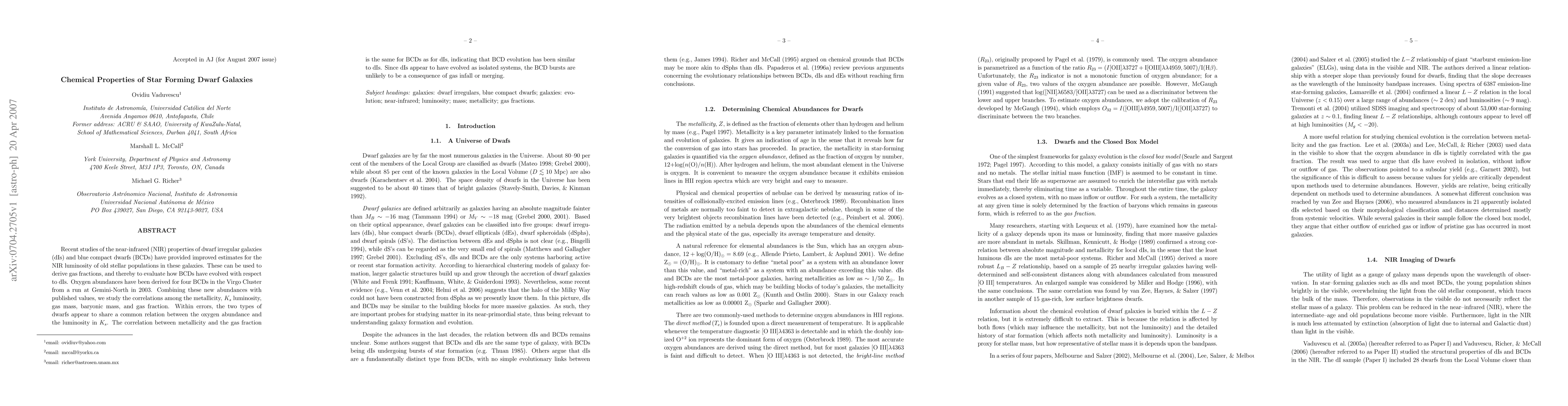 This paper investigates the chemical properties of star-forming dwarf galaxies, finding that blue compact dwarfs (BCDs) and dwarf irregular galaxies (dIs) share similar correlations between metallicity, luminosity, and gas fraction, suggesting similar evolutionary paths despite different star formation histories.