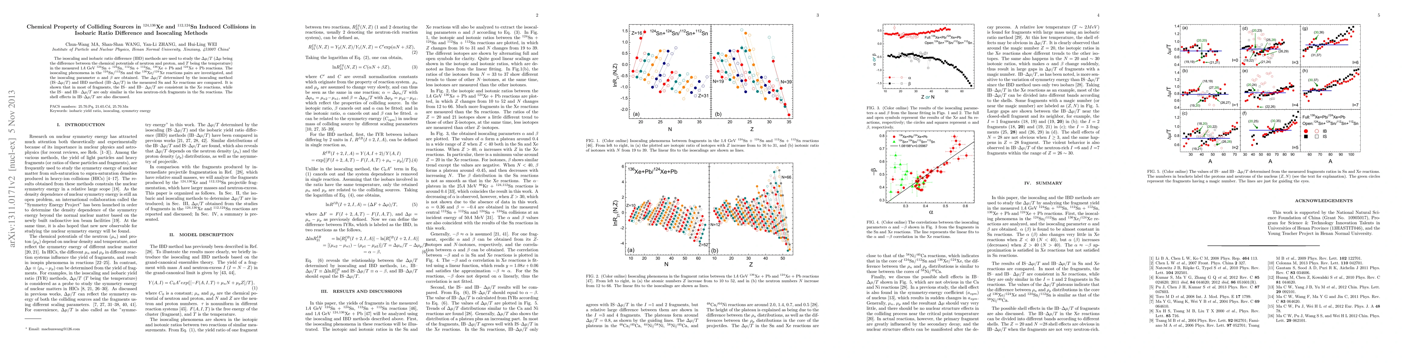 This paper investigates the chemical properties of colliding sources using isoscaling and isobaric ratio difference methods in $^{124,136}$Xe and $^{112,124}$Sn reactions. It finds that the isoscaling and IBD methods yield consistent $\Delta\mu/T$ values in Xe reactions, while only partially agreeing in Sn reactions, particularly in less neutron-rich fragments.