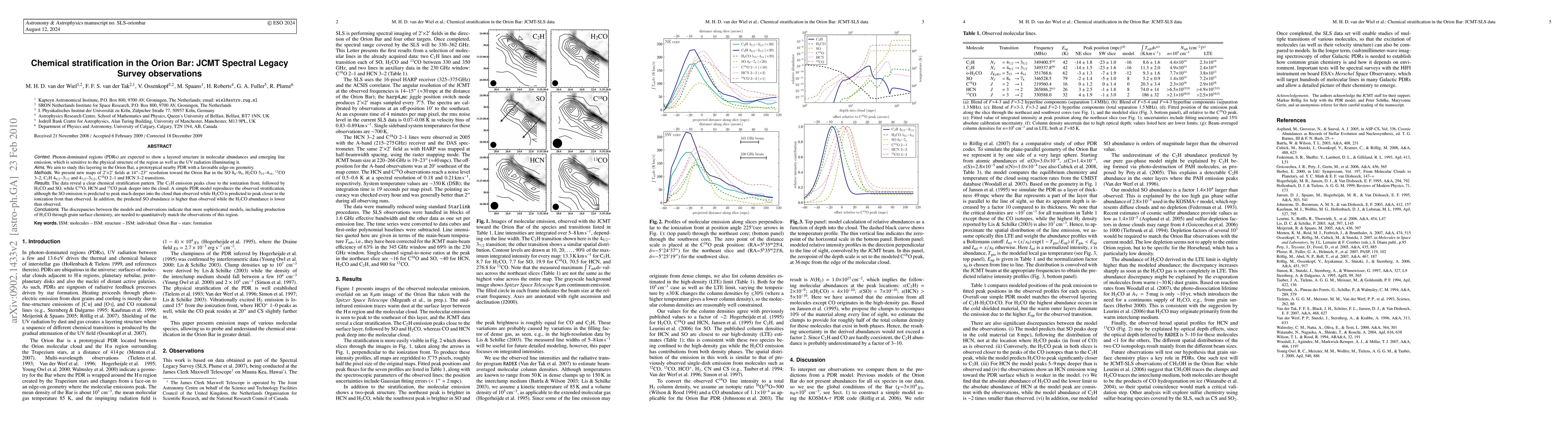 Photon-dominated regions (PDRs) are expected to show a layered structure in molecular abundances and emerging line emission, which is sensitive to the physical structure of the region as well as the UV radiation illuminating it. We aim to study this layering in the Orion Bar, a prototypical nearby PDR with a favorable edge-on geometry. We present new maps of 2 by 2 arcminute fields at 14-23 arcsecond resolution toward the Orion Bar in the SO 8_8-9_9, H2CO 5_(1,5)-4_(1,4), 13CO 3-2, C2H 4_(9/2)-3_(7/2) and 4_(7/2)-3_(5/2), C18O 2-1 and HCN 3-2 transitions. The data reveal a clear chemical stratification pattern. The C2H emission peaks close to the ionization front, followed by H2CO and SO, while C18O, HCN and 13CO peak deeper into the cloud. A simple PDR model reproduces the observed stratification, although the SO emission is predicted to peak much deeper into the cloud than observed while H2CO is predicted to peak closer to the ionization front than observed. In addition, the predicted SO abundance is higher than observed while the H2CO abundance is lower than observed. The discrepancies between the models and observations indicate that more sophisticated models, including production of H2CO through grain surface chemistry, are needed to quantitatively match the observations of this region.