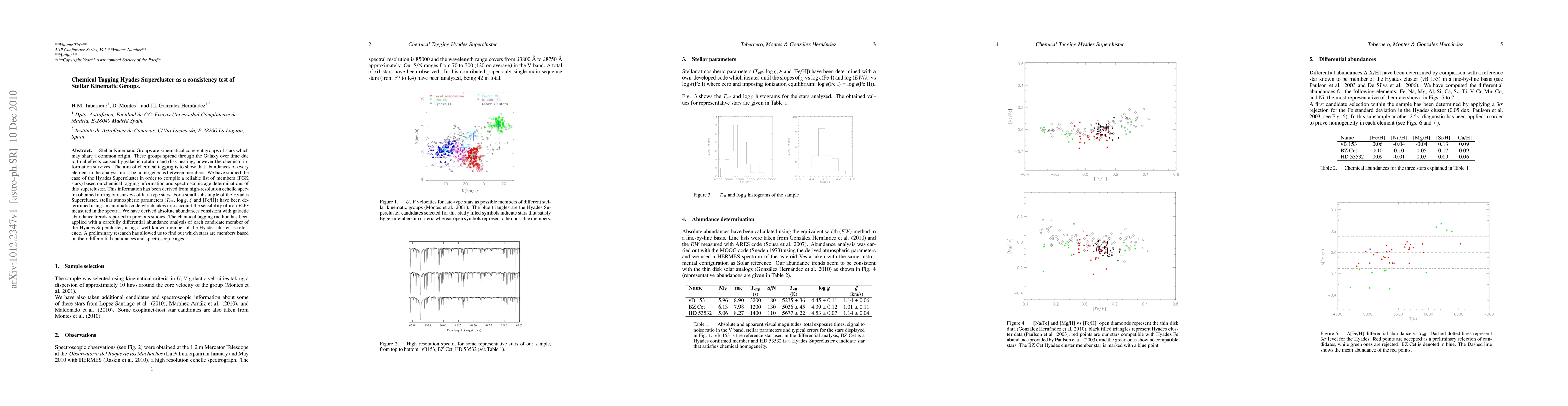 This paper investigates the Hyades Supercluster using chemical tagging to identify stellar kinematic groups based on consistent elemental abundances. The study confirms the method's effectiveness in distinguishing genuine members through high-resolution spectroscopic analysis and differential abundance comparisons.