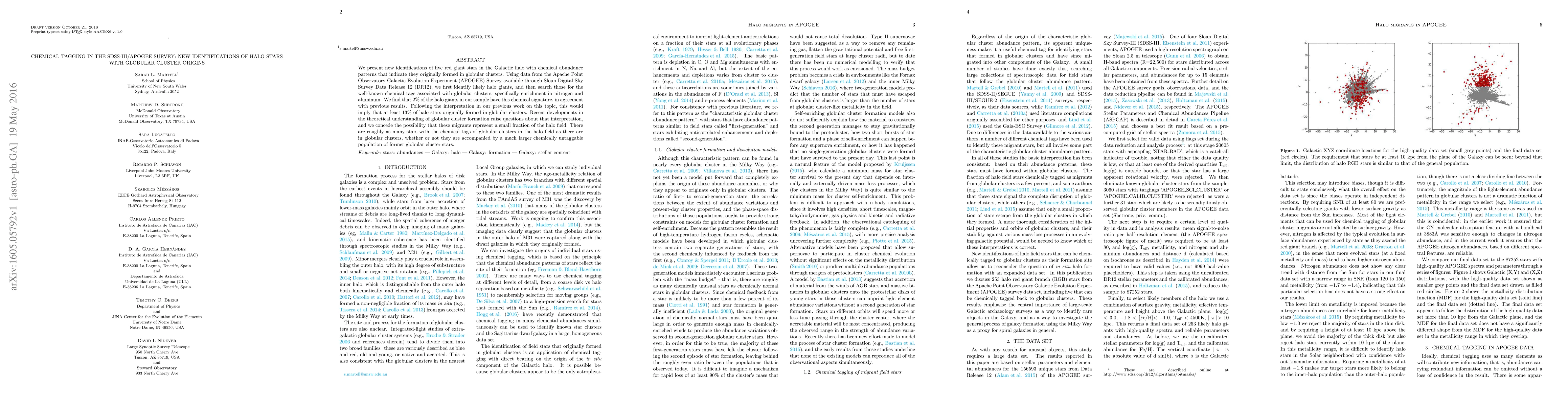 This study identifies five red giant stars in the Galactic halo with chemical signatures indicating their formation in globular clusters, using data from the APOGEE survey. The findings suggest that 2% of halo giants exhibit these signatures, implying that at least 13% of halo stars may have originated in globular clusters, though this interpretation is debated.