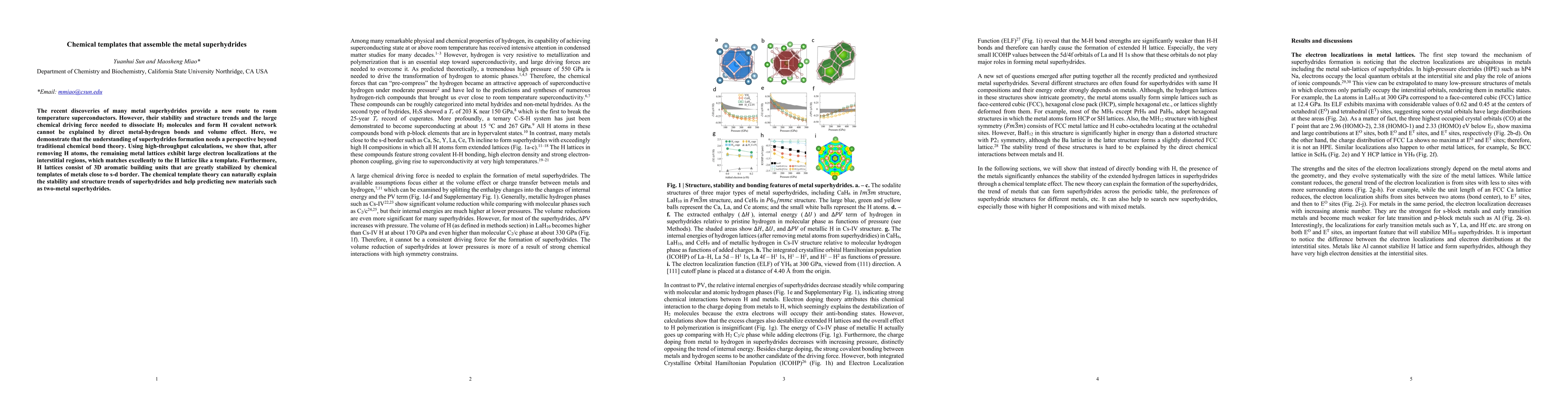 This paper demonstrates that metal superhydrides form due to the alignment of metal lattices with hydrogen lattices acting as chemical templates, rather than traditional metal-hydrogen bonds. The stability and structure trends of superhydrides are explained by the electron localization in interstitial regions of the metal lattice, which matches the hydrogen lattice, thus predicting new two-metal superhydride materials.