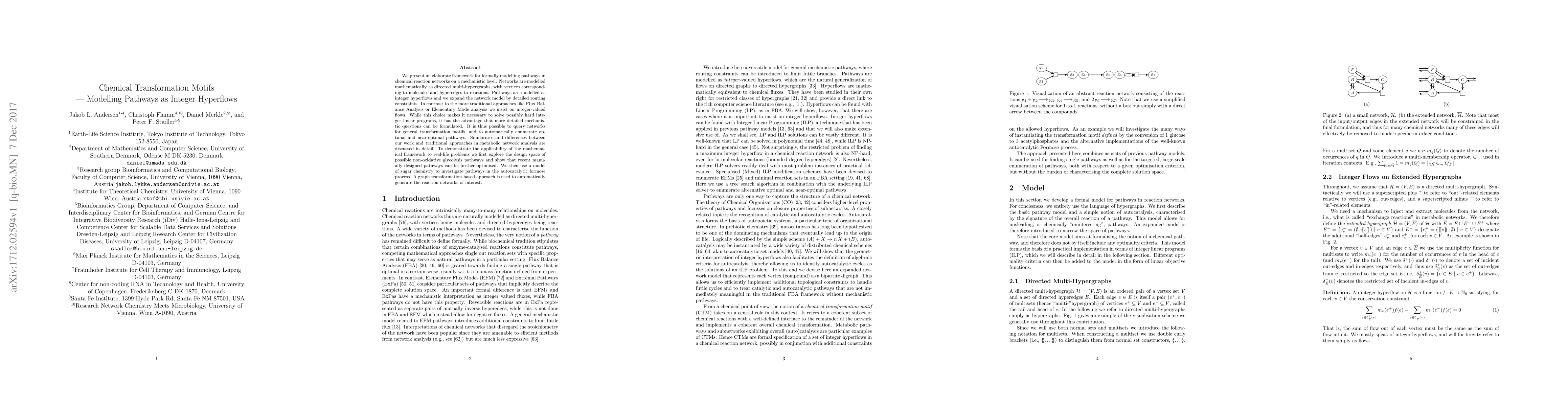 We present an elaborate framework for formally modelling pathways in chemical reaction networks on a mechanistic level. Networks are modelled mathematically as directed multi-hypergraphs, with vertices corresponding to molecules and hyperedges to reactions. Pathways are modelled as integer hyperflows and we expand the network model by detailed routing constraints. In contrast to the more traditional approaches like Flux Balance Analysis or Elementary Mode analysis we insist on integer-valued flows. While this choice makes it necessary to solve possibly hard integer linear programs, it has the advantage that more detailed mechanistic questions can be formulated. It is thus possible to query networks for general transformation motifs, and to automatically enumerate optimal and near-optimal pathways. Similarities and differences between our work and traditional approaches in metabolic network analysis are discussed in detail. To demonstrate the applicability of the mathematical framework to real-life problems we first explore the design space of possible non-oxidative glycolysis pathways and show that recent manually designed pathways can be further optimised. We then use a model of sugar chemistry to investigate pathways in the autocatalytic formose process. A graph transformation-based approach is used to automatically generate the reaction networks of interest.