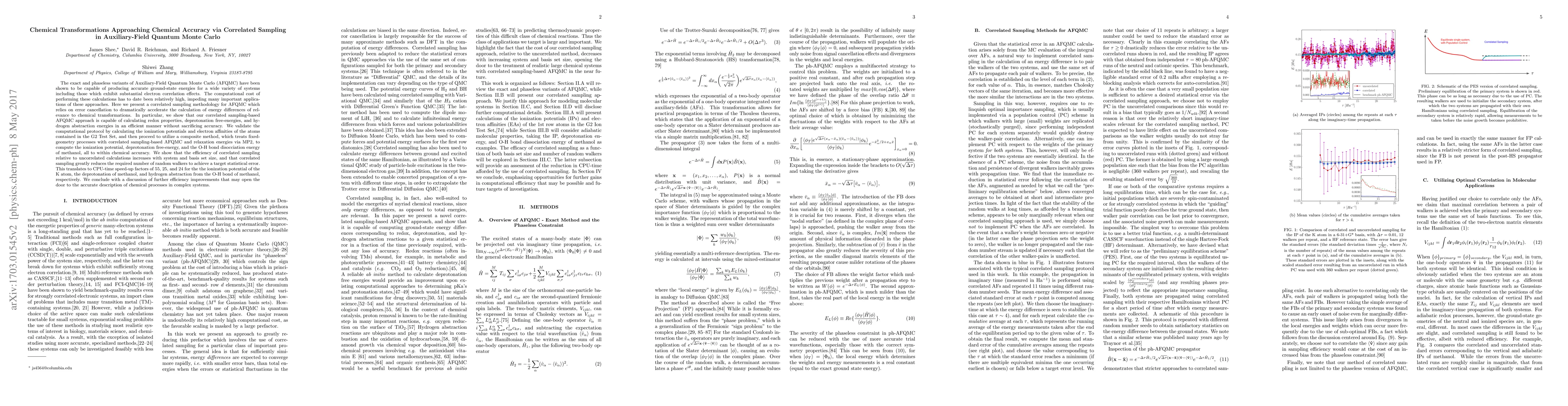 This paper presents a correlated sampling methodology for Auxiliary-Field Quantum Monte Carlo (AFQMC) that significantly accelerates calculations of chemical transformations without sacrificing accuracy. The approach achieves chemical accuracy for redox properties, deprotonation free-energies, and hydrogen abstraction energies, demonstrating substantial CPU-time speed-up factors.