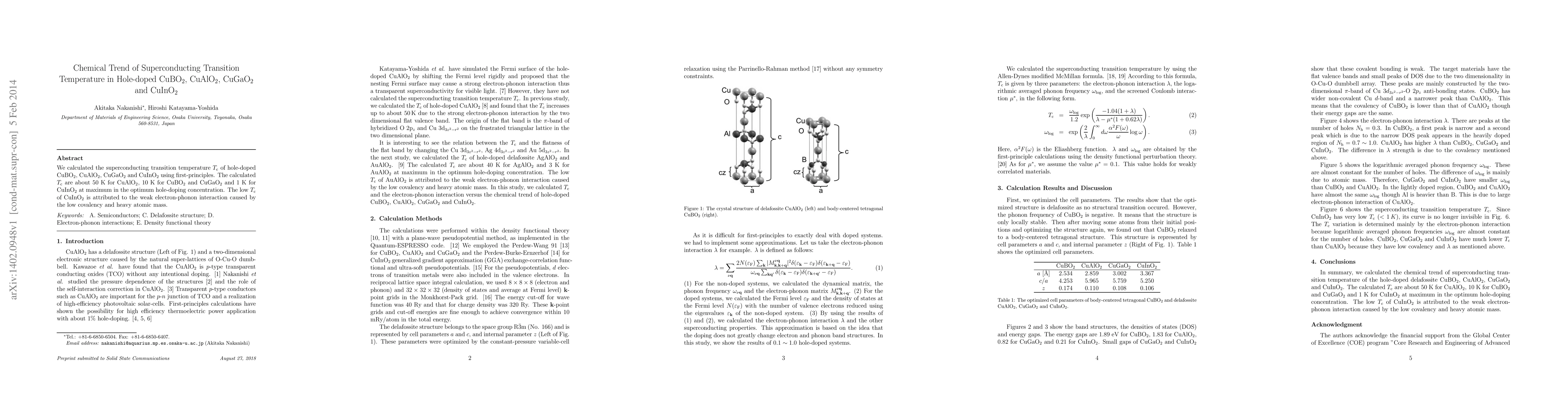 This study uses first-principles calculations to predict superconducting transition temperatures (T_c) for hole-doped CuBO2, CuAlO2, CuGaO2, and CuInO2. The results show T_c around 50K for CuAlO2, 10K for CuBO2 and CuGaO2, and only 1K for CuInO2 due to weak electron-phonon interaction and low covalency in CuInO2.