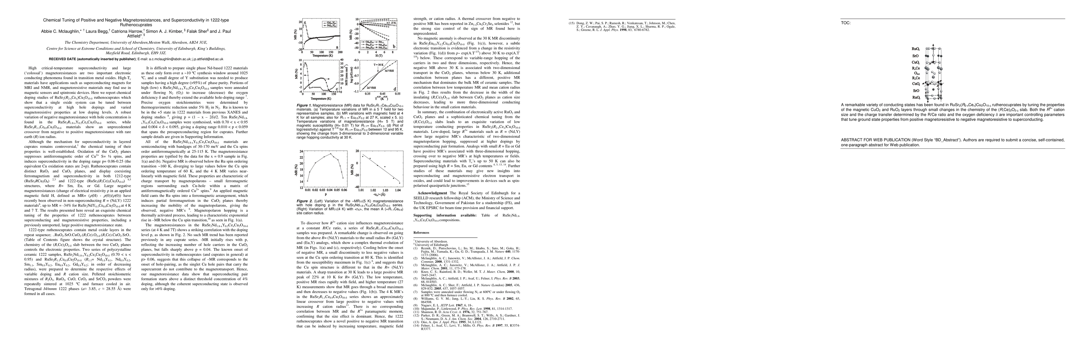 High critical-temperature superconductivity and large (colossal) magnetoresistances are two important electronic conducting phenomena found in transition metal oxides. High-Tc materials have applications such as superconducting magnets for MRI and NMR, and magnetoresistive materials may find use in magnetic sensors and spintronic devices. Here we report chemical doping studies of RuSr2(R2-xCex)Cu2O10-d ruthenocuprates which show that a single oxide system can be tuned between superconductivity at high hole dopings and varied magnetoresistive properties at low doping levels. A robust variation of negative magnetoresistance with hole concentration is found in the RuSr2R1.8-xY0.2CexCu2O10-d series, while RuSr2R1.1Ce0.9Cu2O10-d materials show an unprecedented crossover from negative to positive magnetoresistance with rare earth (R) ion radius.