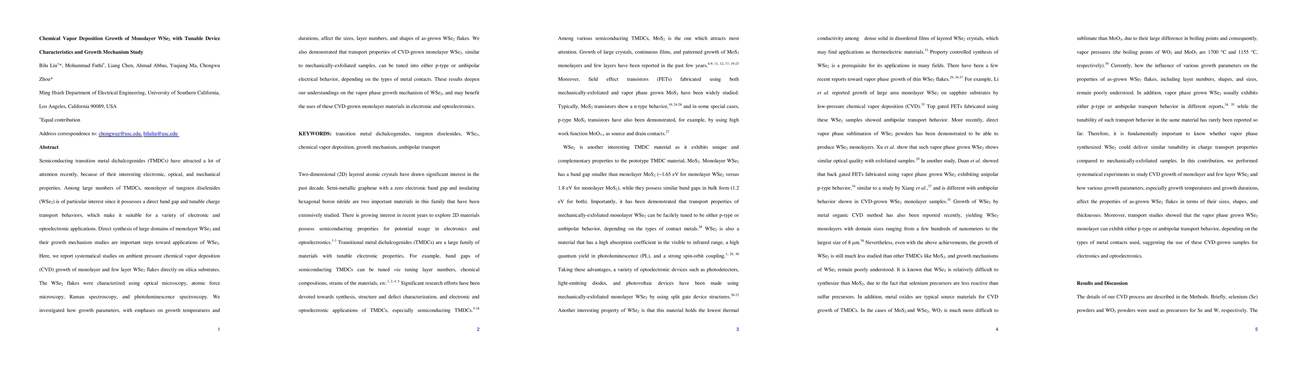 This paper reports on the ambient pressure chemical vapor deposition (CVD) growth of monolayer WSe2 on silica substrates, examining the effects of growth parameters on WSe2 properties. The study reveals that CVD-grown WSe2 can exhibit tunable p-type or ambipolar electrical behavior, enhancing the understanding of WSe2's growth mechanism for potential electronic and optoelectronic applications.