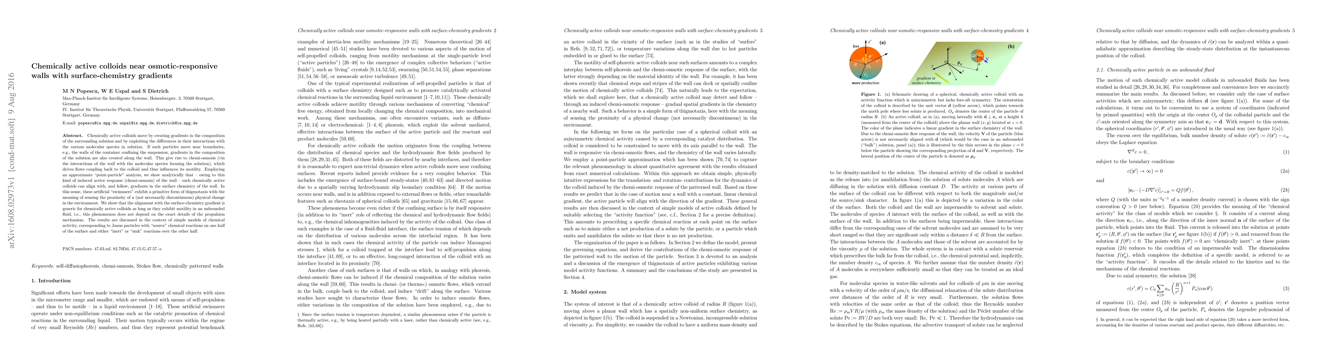 This paper explores how chemically active colloids, which generate gradients in their surrounding solution, interact with osmotic-responsive walls featuring surface-chemistry gradients. The study reveals that these colloids can align and follow these gradients due to induced chemi-osmosis, demonstrating a primitive form of thigmotaxis.