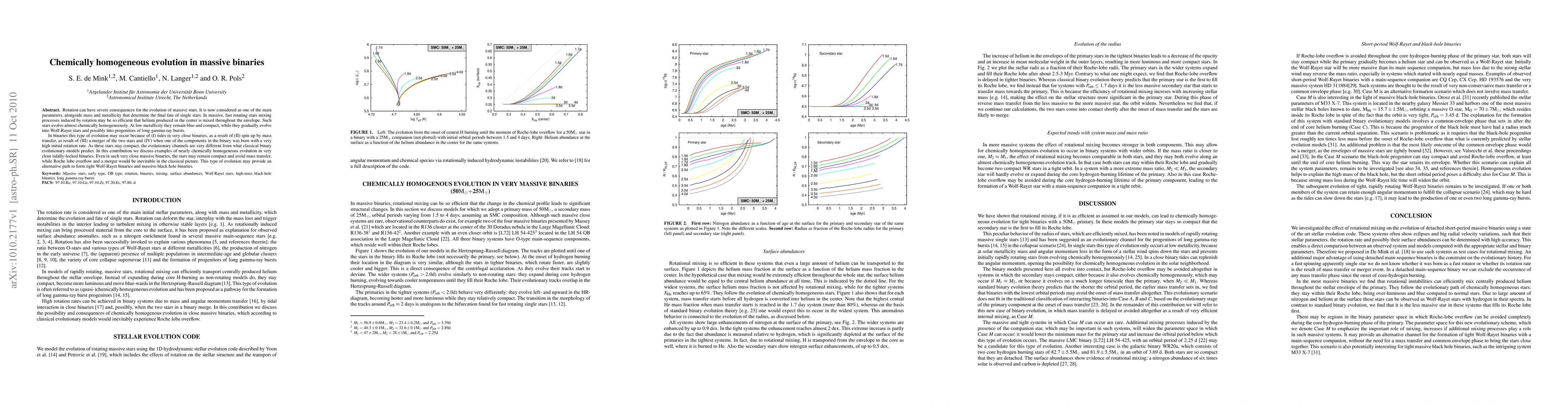 This paper explores the chemically homogeneous evolution of massive stars in binaries, driven by rotation, which can lead to compact stars avoiding classical mass transfer, forming unique binary systems like Wolf-Rayet binaries and massive black hole binaries. The study highlights the impact of tidal forces, spin-up by mass transfer, mergers, and high initial rotation rates on this evolution.