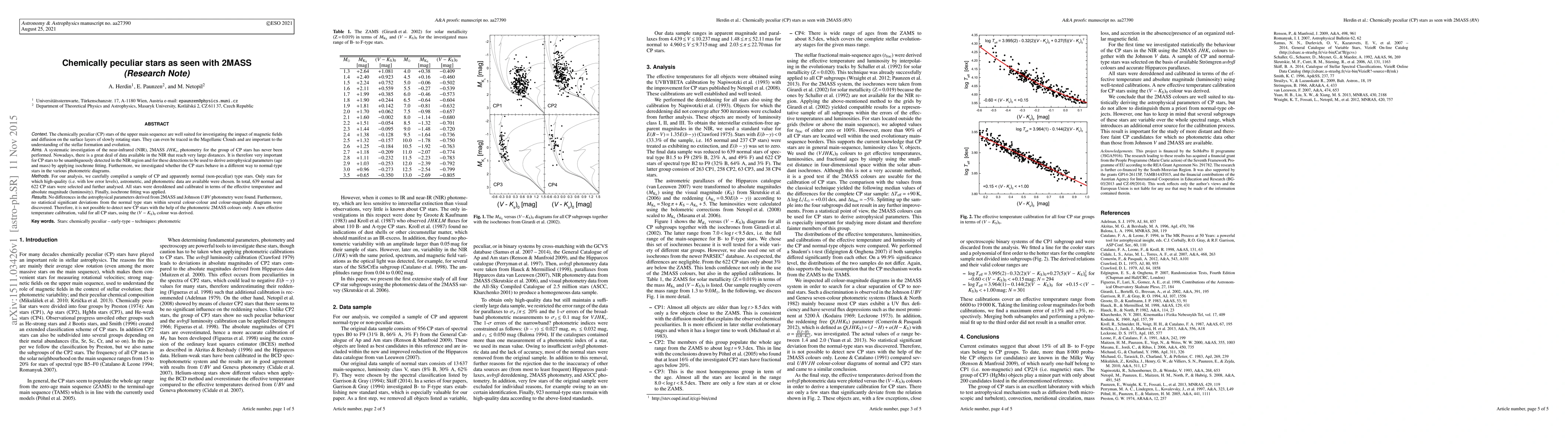The chemically peculiar (CP) stars of the upper main sequence are well suited for investigating the impact of magnetic fields and diffusion on the surface layers of slowly rotating stars. They can even be traced in the Magellanic Clouds and are important to the understanding of the stellar formation and evolution. A systematic investigation of the near-infrared (NIR), 2MASS JHKs, photometry for the group of CP stars has never been performed. Nowadays, there is a great deal of data available in the NIR that reach very large distances. It is therefore very important for CP stars to be unambiguously detected in the NIR region and for these detections to be used to derive astrophysical parameters (age and mass) by applying isochrone fitting. Furthermore, we investigated whether the CP stars behave in a different way to normal-type stars in the various photometric diagrams. For our analysis, we carefully compiled a sample of CP and apparently normal (non-peculiar) type stars. Only stars for which high-quality (i.e. with low error levels), astrometric, and photometric data are available were chosen. In total, 639 normal and 622 CP stars were selected and further analysed. All stars were dereddened and calibrated in terms of the effective temperature and absolute magnitude (luminosity). Finally, isochrone fitting was applied. No differences in the astrophysical parameters derived from 2MASS and Johnson UBV photometry were found. Furthermore, no statistical significant deviations from the normal type stars within several colour-colour and colour-magnitude diagrams were discovered. Therefore, it is not possible to detect new CP stars with the help of the photometric 2MASS colours only. A new effective temperature calibration, valid for all CP stars, using the (V-Ks)0 colour was derived.