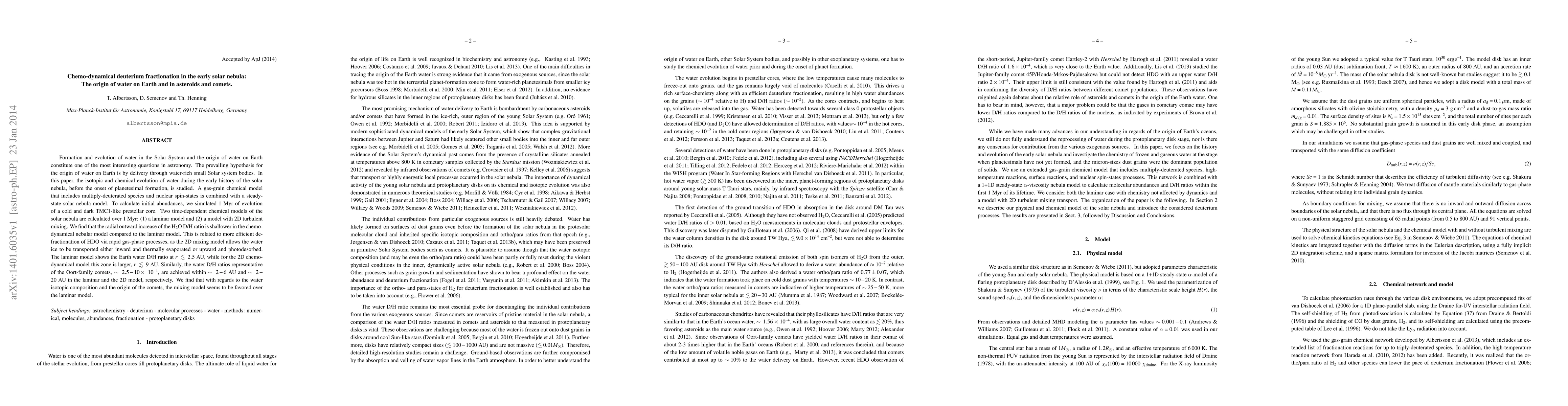 This paper investigates the chemo-dynamical fractionation of deuterium in the early solar nebula, finding that turbulent mixing enhances de-fractionation of HDO, expanding the region where Earth-like water D/H ratios could form. The 2D turbulent mixing model better explains the isotopic composition of water in asteroids and comets compared to a laminar model.