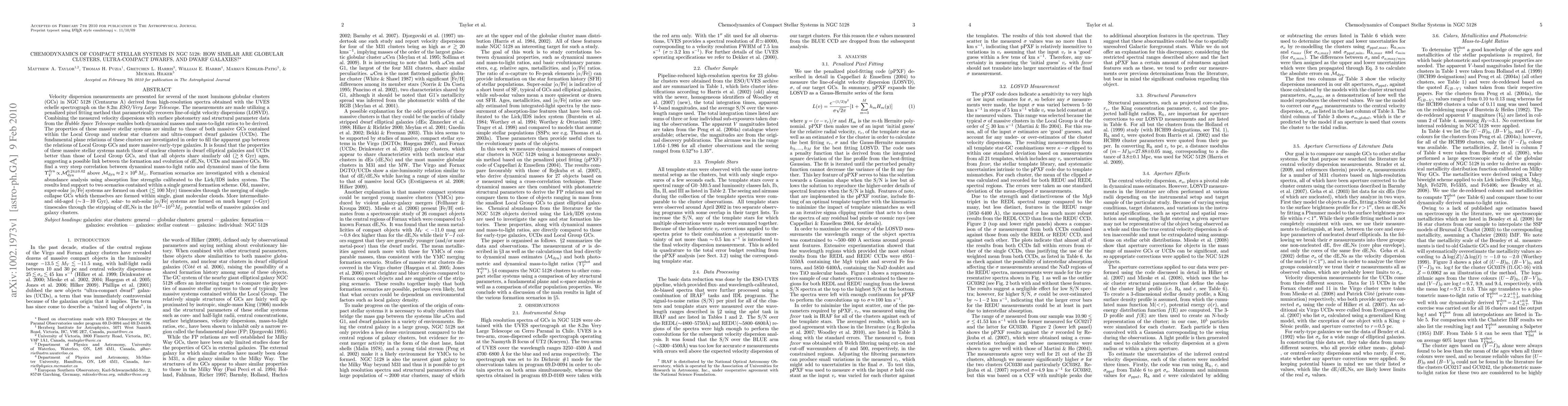 Velocity dispersion measurements are presented for luminous GCs in NGC 5128 derived from high-res. UVES spectra. The measurements are made with the pPXF code that parametrically recovers line-of-sight velocity dispersions. Combining the measured velocity dispersions with surface photometry and structural parameter data from HST enables both dynamical masses and M/L ratios to be derived. The fundamental plane relations of these clusters are investigated in order to fill the apparent gap between the relations of Local Group GCs and more massive early-type galaxies. It is found that the properties of these massive stellar systems match those of nuclear clusters in dwarf elliptical galaxies and UCDs better than those of Local Group GCs, and that all objects share similarly old (>8 Gyr) ages, suggesting a possible link between the formation and evolution of dE,Ns, UCDs and massive GCs. We find a very steep correlation between dynamical (M/L) ratio and dynamical mass of the form (M/L)_dyn ~ M_dyn^(0.24+/-0.02) above M_dyn = 2x10^6 Msol. Formation scenarios are investigated with a chemical abundance analysis using absorption line strengths calibrated to the Lick/IDS index system. The results lend support to two scenarios contained within a single general formation scheme. Old, massive, super-solar [alpha/Fe] systems are formed on short (<100 Myr) timescales through the merging of single-collapse GCs which themselves are formed within single, giant molecular clouds. More intermediate- and old-aged (~3-10 Gyr), solar- to sub-solar [alpha/Fe] systems are formed on much longer (~Gyr) timescales through the stripping of dE,Ns in the 10^13-10^15 Msol potential wells of massive galaxies and galaxy clusters.