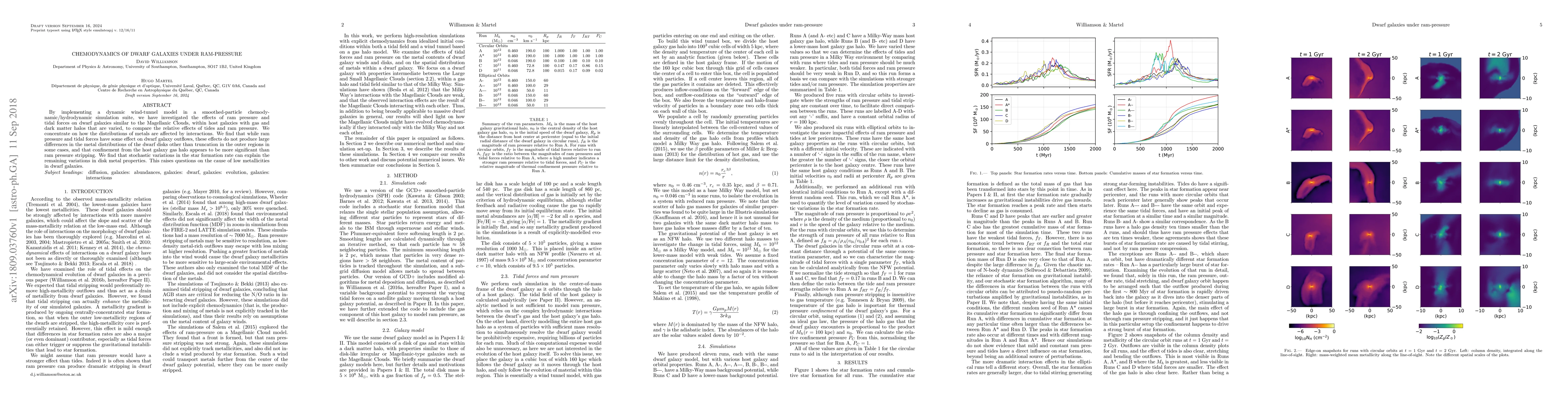 This study uses a dynamic wind-tunnel model to simulate the chemodynamics of dwarf galaxies under ram pressure, finding that while ram pressure and tidal forces affect outflows, they do not significantly alter metal distributions except for truncation in outer regions. The research highlights that confinement from the host galaxy gas halo is more impactful than ram pressure stripping, with stochastic variations in star formation rate explaining remaining variations in disk metal properties.