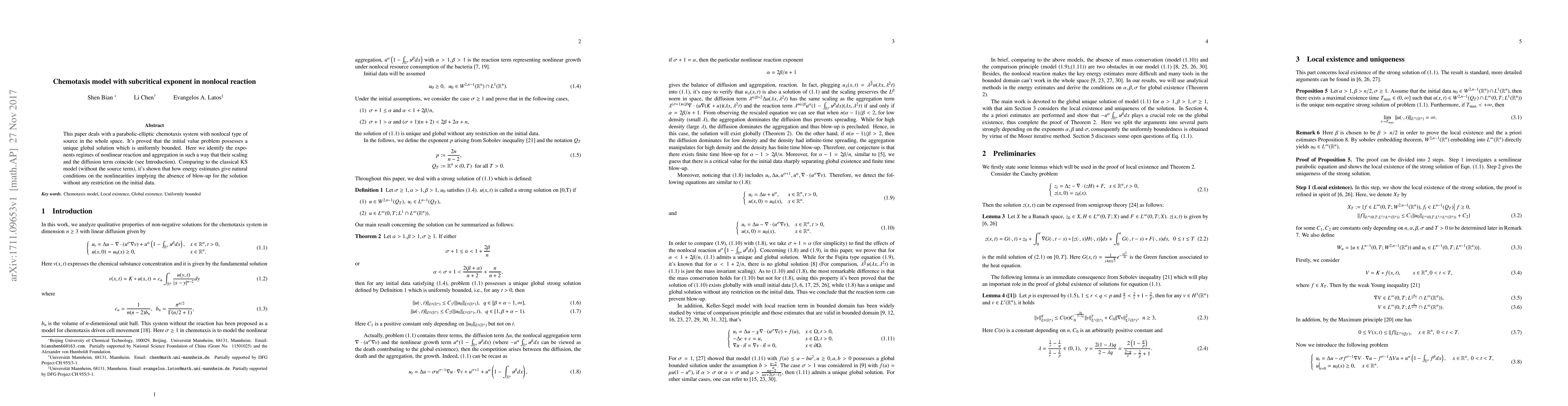 A chemotaxis model with nonlocal reaction is shown to have a unique global solution that is uniformly bounded, regardless of the initial data. This finding implies that energy estimates can prevent blow-up for solutions in certain exponents regimes.