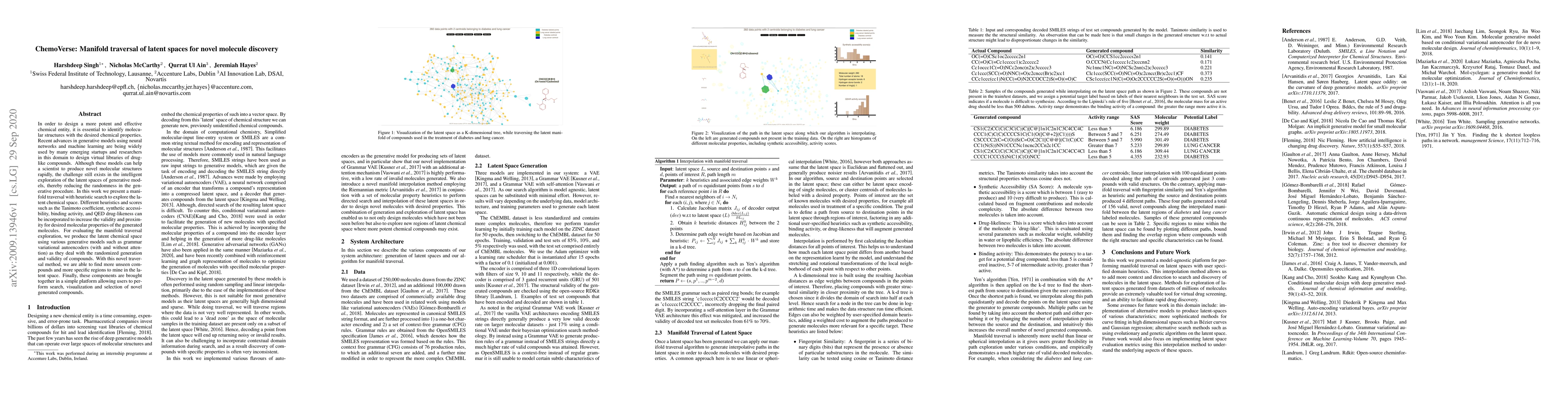 In order to design a more potent and effective chemical entity, it is essential to identify molecular structures with the desired chemical properties. Recent advances in generative models using neural networks and machine learning are being widely used by many emerging startups and researchers in this domain to design virtual libraries of drug-like compounds. Although these models can help a scientist to produce novel molecular structures rapidly, the challenge still exists in the intelligent exploration of the latent spaces of generative models, thereby reducing the randomness in the generative procedure. In this work we present a manifold traversal with heuristic search to explore the latent chemical space. Different heuristics and scores such as the Tanimoto coefficient, synthetic accessibility, binding activity, and QED drug-likeness can be incorporated to increase the validity and proximity for desired molecular properties of the generated molecules. For evaluating the manifold traversal exploration, we produce the latent chemical space using various generative models such as grammar variational autoencoders (with and without attention) as they deal with the randomized generation and validity of compounds. With this novel traversal method, we are able to find more unseen compounds and more specific regions to mine in the latent space. Finally, these components are brought together in a simple platform allowing users to perform search, visualization and selection of novel generated compounds.
