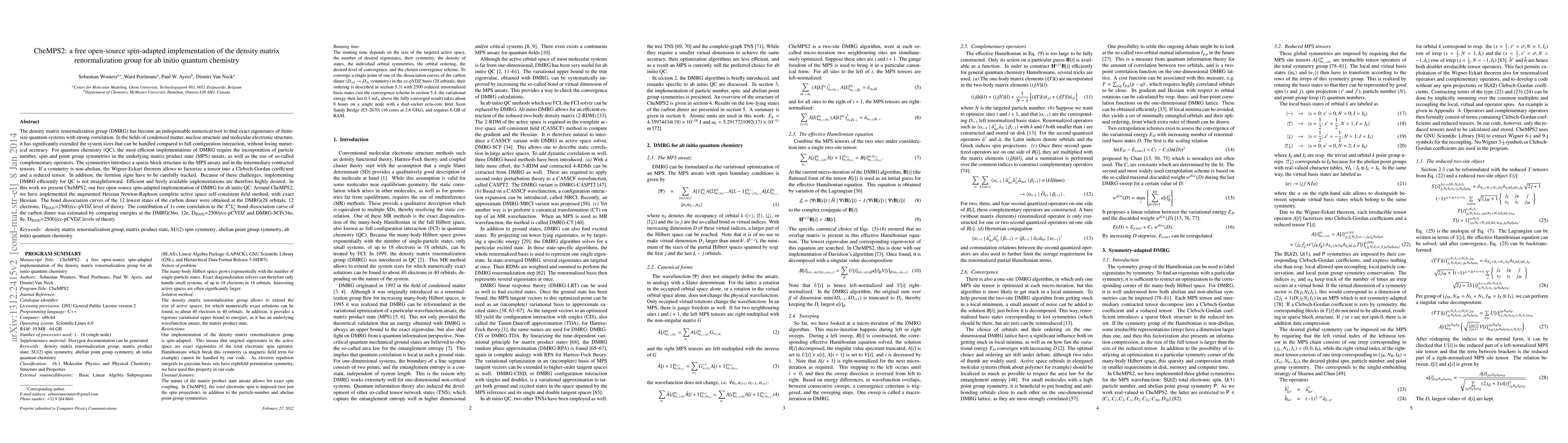 This paper introduces CheMPS2, a free open-source implementation of the density matrix renormalization group for ab initio quantum chemistry, enabling accurate calculations of molecular electronic structures with complex symmetries.