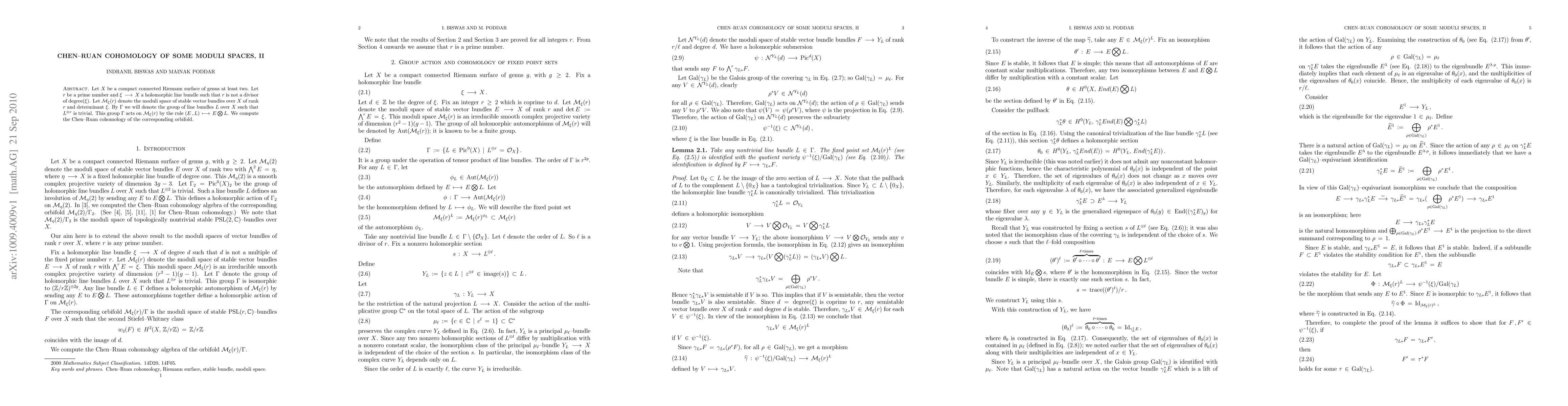 This paper computes the Chen-Ruan cohomology for the orbifold formed by the moduli space of stable vector bundles over a compact Riemann surface with a specified determinant and rank, under the action of a group of line bundles whose tensor power is trivial. The result provides insights into the cohomological structure of these moduli spaces.