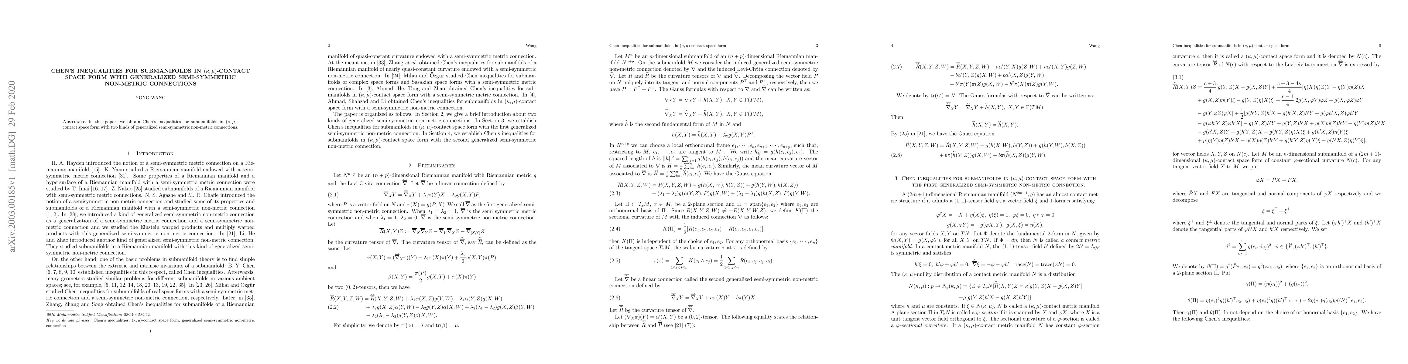 Researchers derived Chen's inequalities for submanifolds in θ-kappa, η-mu contact space with non-metric connections, expanding the scope of known results in differential geometry.