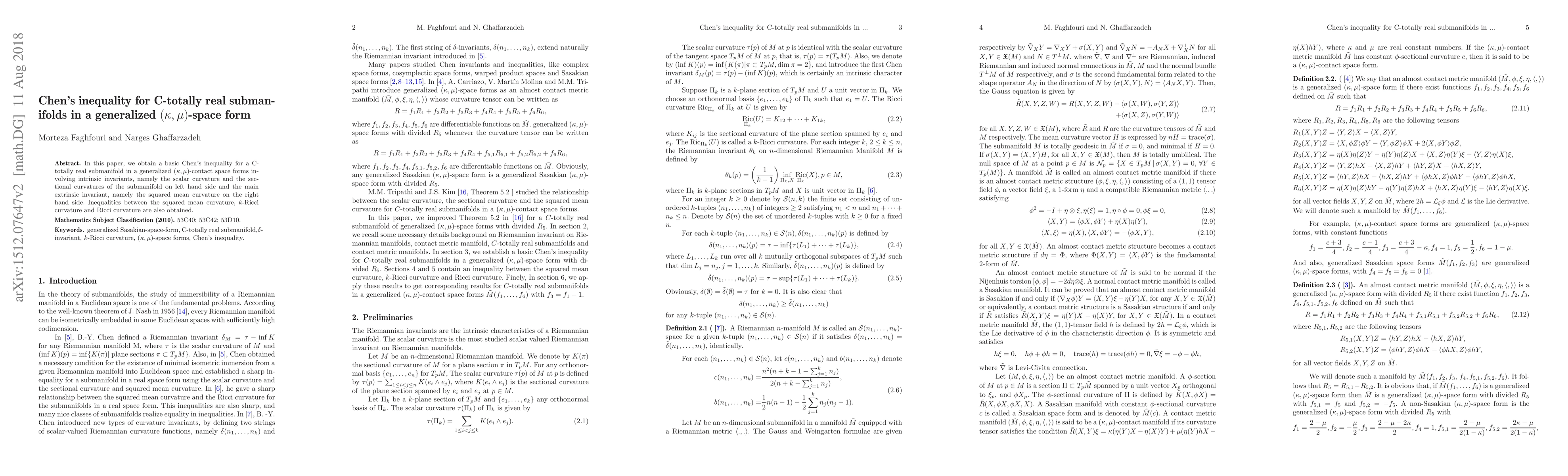 In this paper, we obtain a basic Chen's inequality for a C-totally real submanifold in a generalized $(\kappa ,\mu)$-contact space forms involving intrinsic invariants, namely the scalar curvature and the sectional curvatures of the submanifold on left hand side and the main extrinsic invariant, namely the squared mean curvature on the right hand side. Inequalities between the squared mean curvature and Ricci curvature and between the squared mean curvature and $k$-Ricci curvature are also obtained.