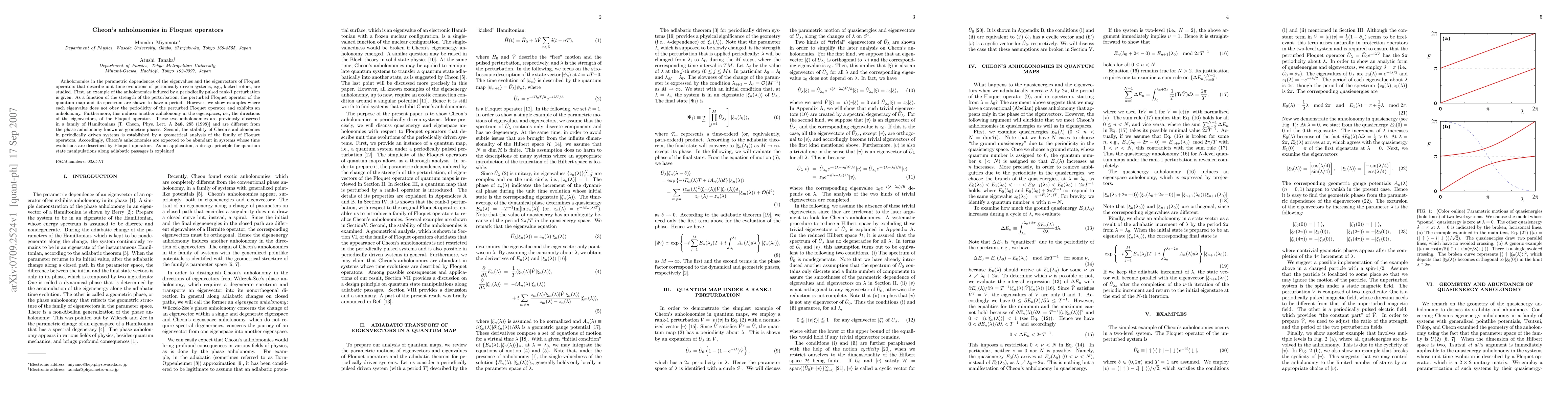 Cheon's anholonomies in Floquet operators reveal non-periodic behaviors in eigenvalues and eigenvectors of periodically driven systems, differing from geometric phases. Stability of these anholonomies is demonstrated through a geometrical analysis, with implications for quantum state manipulations.