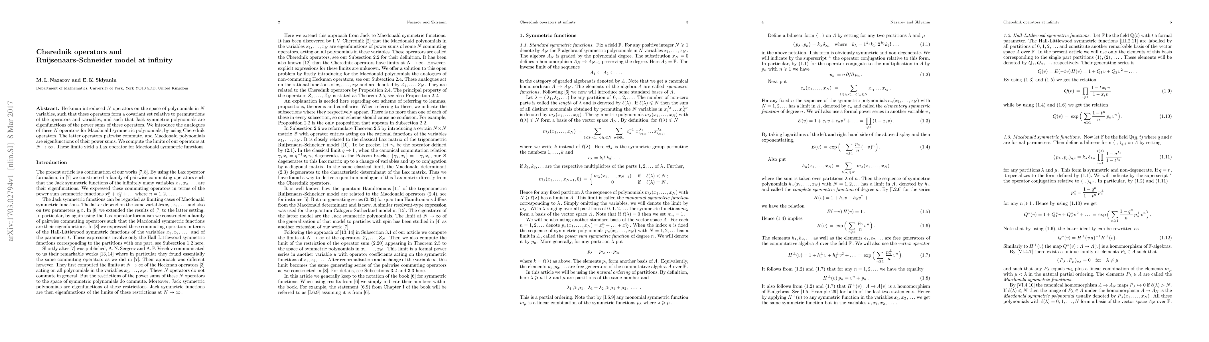 This paper introduces Cherednik operators that generalize Heckman operators for Macdonald symmetric polynomials, computing their limits at infinity, which coincide with a previously established Lax operator for Macdonald symmetric functions.