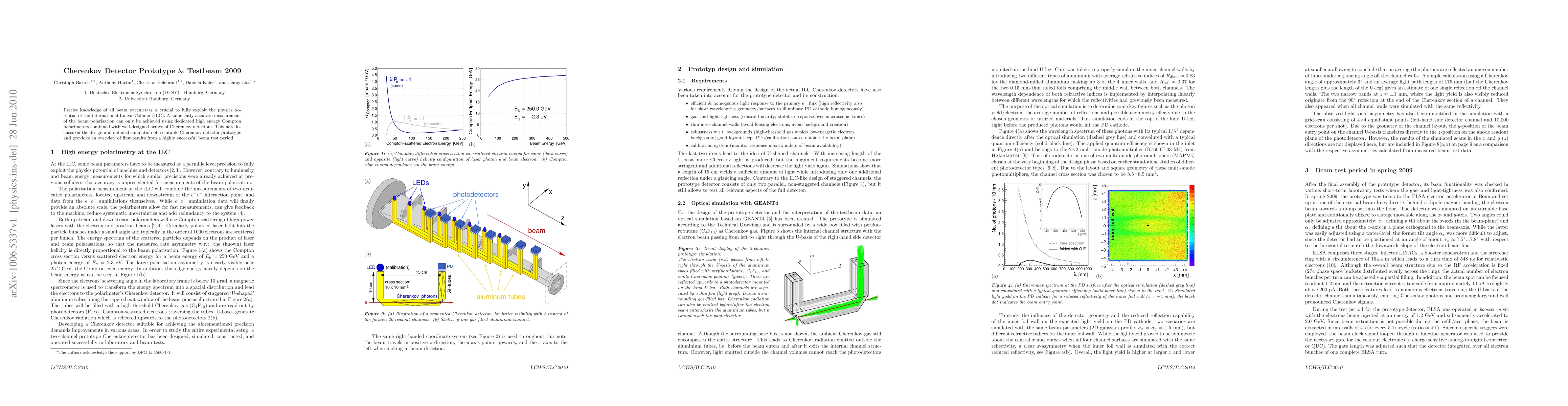 This paper presents the design and simulation of a Cherenkov detector prototype aimed at accurately measuring beam polarization for the International Linear Collider (ILC). Initial test results from a successful 2009 beam test period demonstrate promising performance.