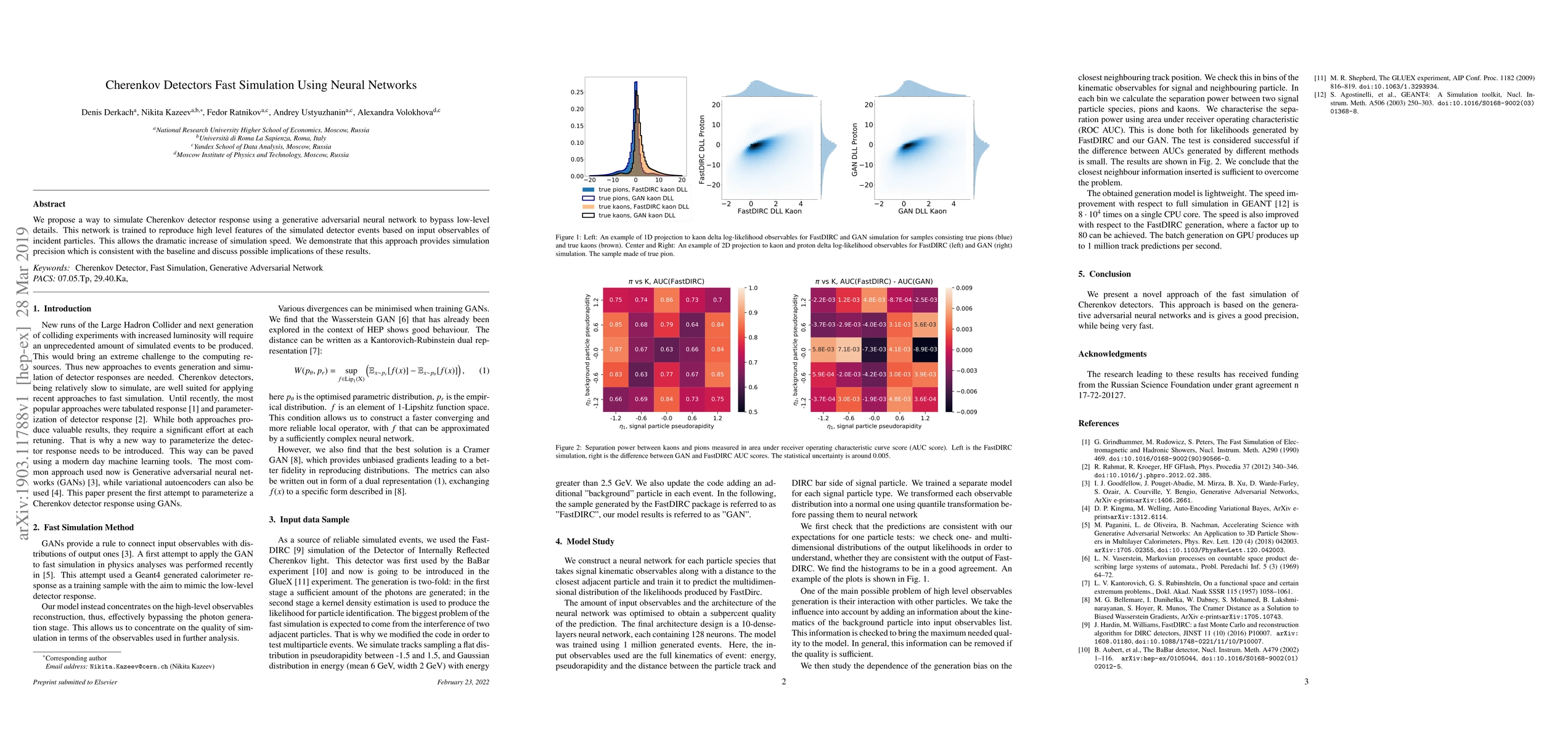 This paper proposes a generative adversarial neural network to rapidly simulate Cherenkov detector responses by focusing on high-level features, bypassing low-level details, and achieving significant speed increases while maintaining simulation precision comparable to traditional methods. The potential implications of this approach are also discussed.