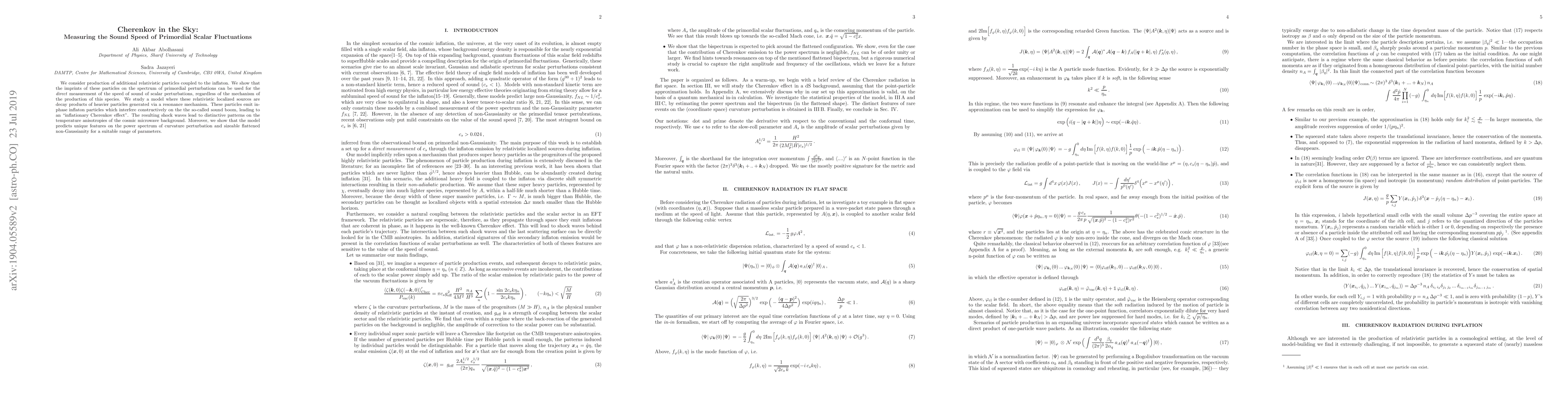 The paper introduces a novel approach to measure the speed of sound of scalar perturbations using the 'inflationary Cherenkov effect' induced by relativistic particles coupled to the inflaton, offering a unique signature in CMB anisotropies.