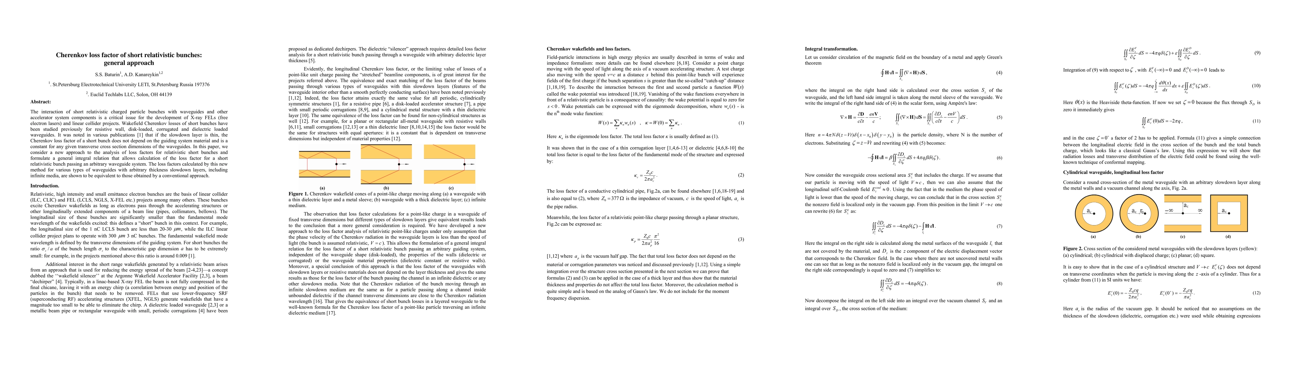 The interaction of short relativistic charged particle bunches with waveguides and other accelerator system components is a critical issue for the development of X-ray FELs (free electron lasers) and linear collider projects. Wakefield Cherenkov losses of short bunches have been studied previously for resistive wall, disk-loaded, corrugated and dielectric loaded waveguides. It was noted in various publications [1] that if the slowdown layer is thin, the Cherenkov loss factor of a short bunch does not depend on the guiding system material and is a constant for any given transverse cross section dimensions of the waveguides. In this paper, we consider a new approach to the analysis of loss factors for relativistic short bunches and formulate a general integral relation that allows calculation of the loss factor for a short relativistic bunch passing an arbitrary waveguide system. The loss factors calculated by this new method for various types of waveguides with arbitrary thickness slowdown layers, including infinite media, are shown to be equivalent to those obtained by a conventional approach.