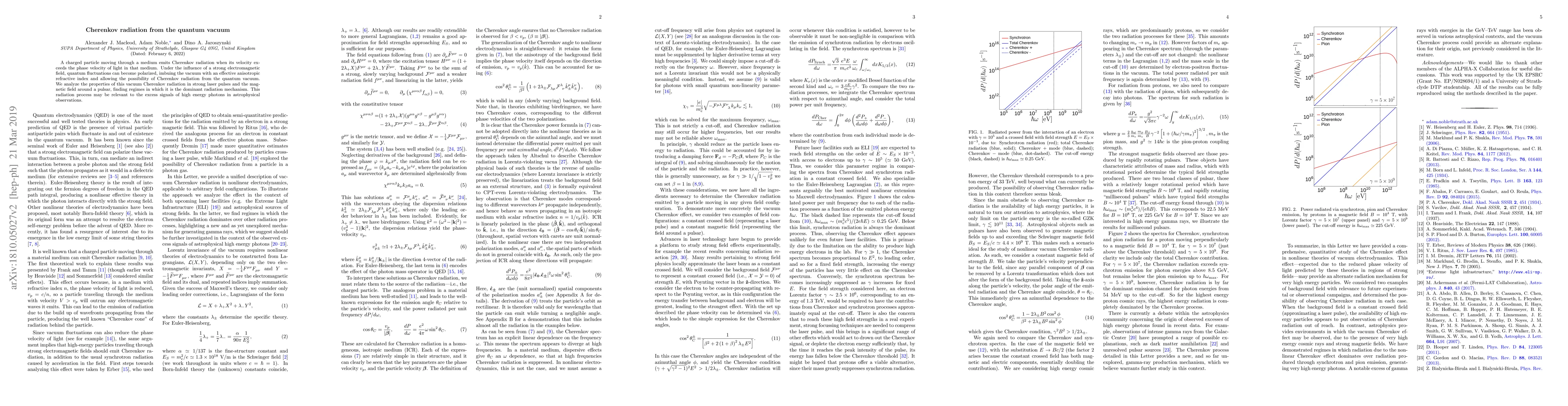 This paper explores the phenomenon of Cherenkov radiation from the quantum vacuum, where strong electromagnetic fields polarize quantum fluctuations, creating an effective refractive index that allows for this radiation. The study identifies conditions in strong laser pulses and pulsar magnetic fields where vacuum Cherenkov radiation becomes dominant, potentially explaining excess high-energy photon signals in astrophysical observations.