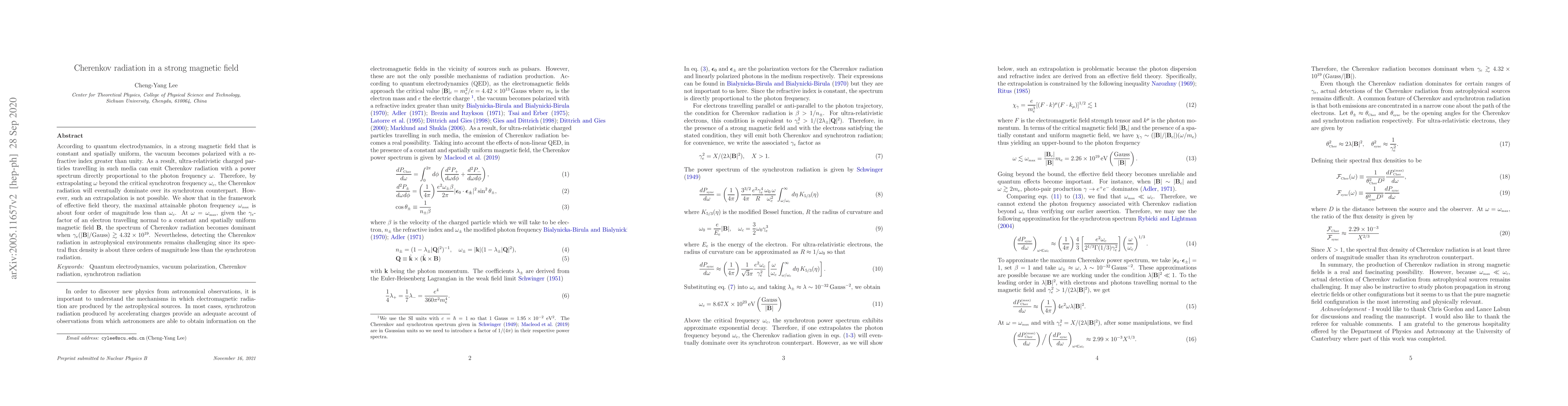 This paper explores Cherenkov radiation in strong magnetic fields, demonstrating that while vacuum polarization can lead to Cherenkov emission in such fields, the achievable photon frequency is significantly lower than the synchrotron frequency. Detecting this radiation remains challenging due to its much lower spectral flux density compared to synchrotron radiation.