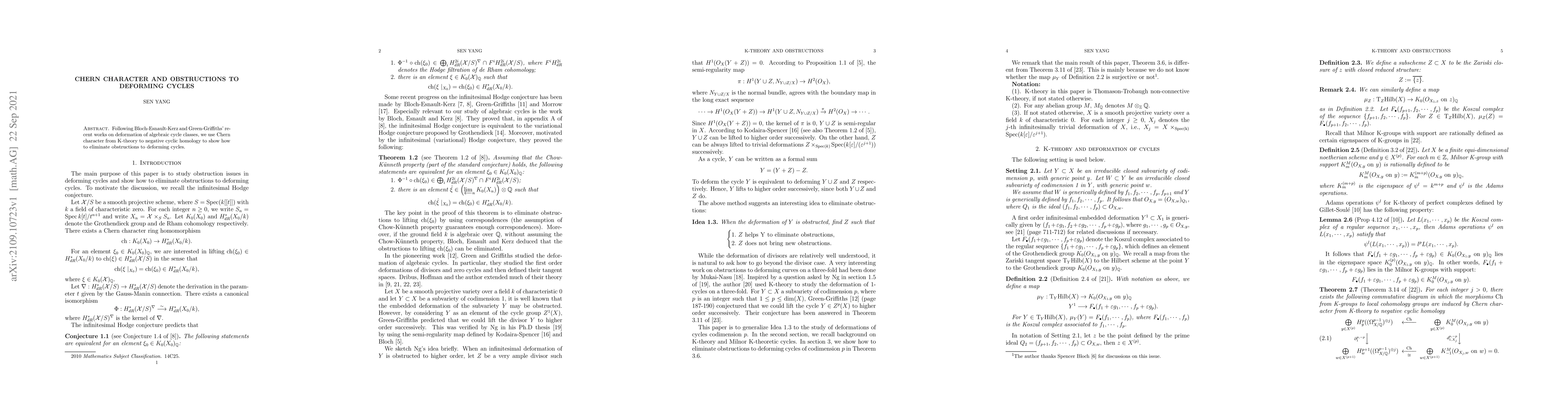 Following Bloch-Esnault-Kerz and Green-Griffiths' recent works on deformation of algebraic cycle classes, we use Chern character from K-theory to negative cyclic homology to show how to eliminate obstructions to deforming cycles.