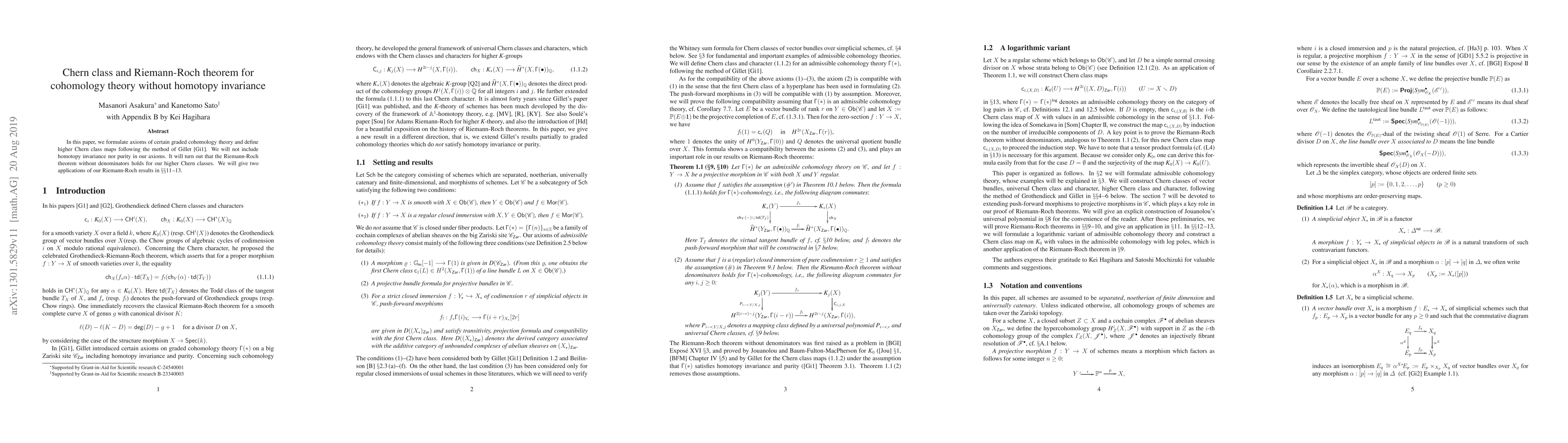 This paper formulates a graded cohomology theory without homotopy invariance or purity, defining Chern class maps from higher K-theory. The Grothendieck-Riemann-Roch theorem and Riemann-Roch theorem without denominators are proven to hold for these Chern classes, with two applications of the Riemann-Roch results provided.