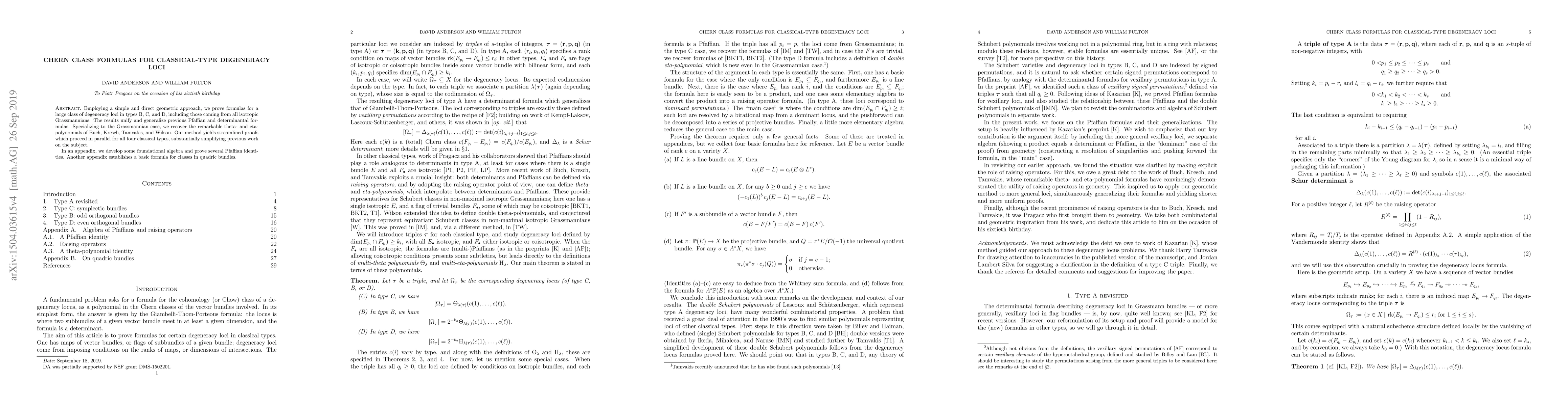 This paper refines a geometric method to derive Chern class formulas for a broader class of degeneracy loci, including those from isotropic Grassmannians, yielding simplified proofs for classical types B, C, and D. The approach recovers theta- and eta-polynomials and includes foundational algebra and Pfaffian identities in appendices.
