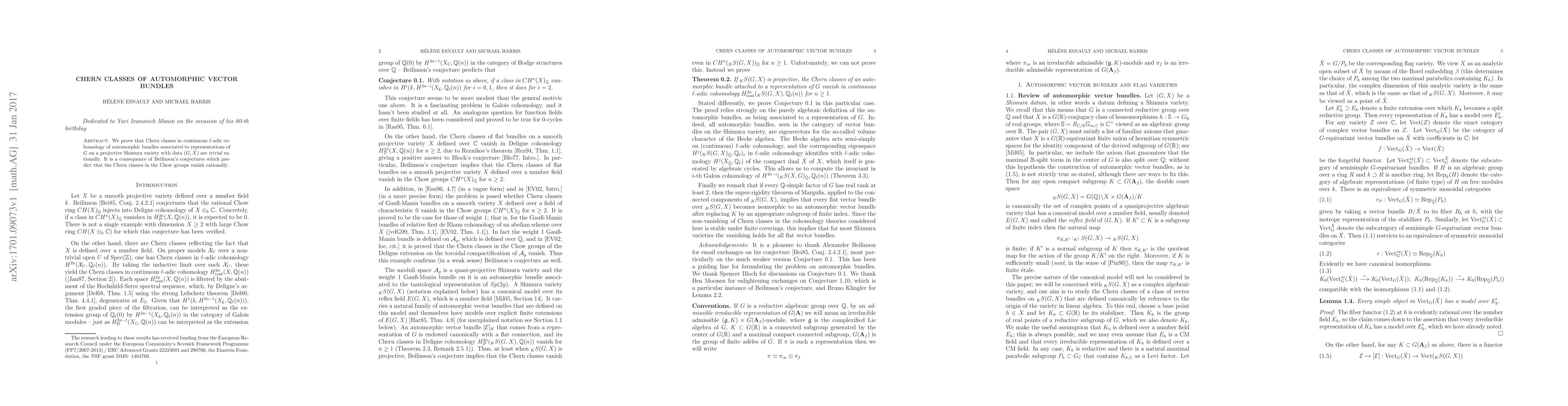 Summary: The paper demonstrates that the Chern classes of automorphic vector bundles linked to representations of $G$ on a projective Shimura variety are rationally trivial, confirming a prediction from Beilinson's conjectures about vanishing Chern classes in Chow groups.
