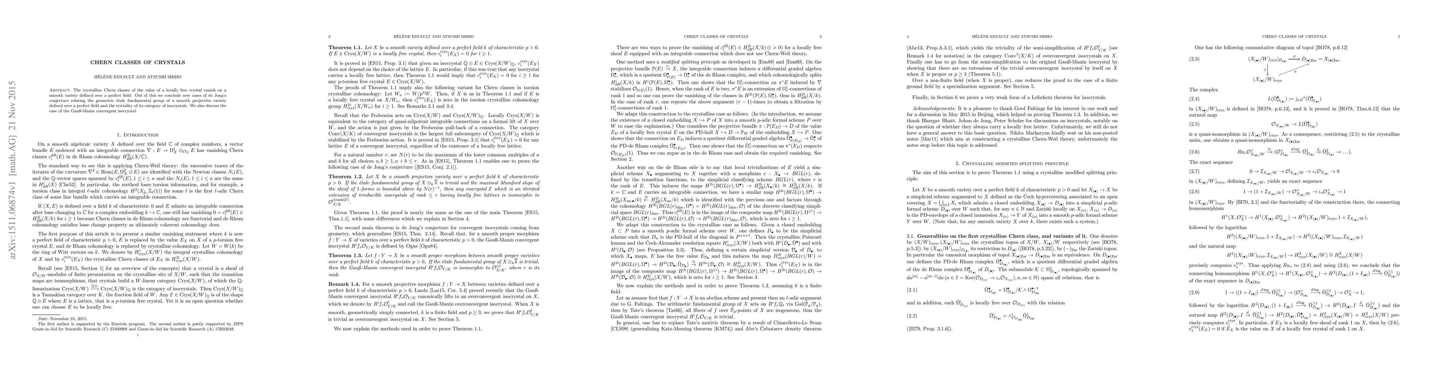 Researchers found that Chern classes of crystals vanish on smooth varieties defined over perfect fields, leading to new insights into de Jong's conjecture about isocrystals and their relationship to the geometric etale fundamental group.