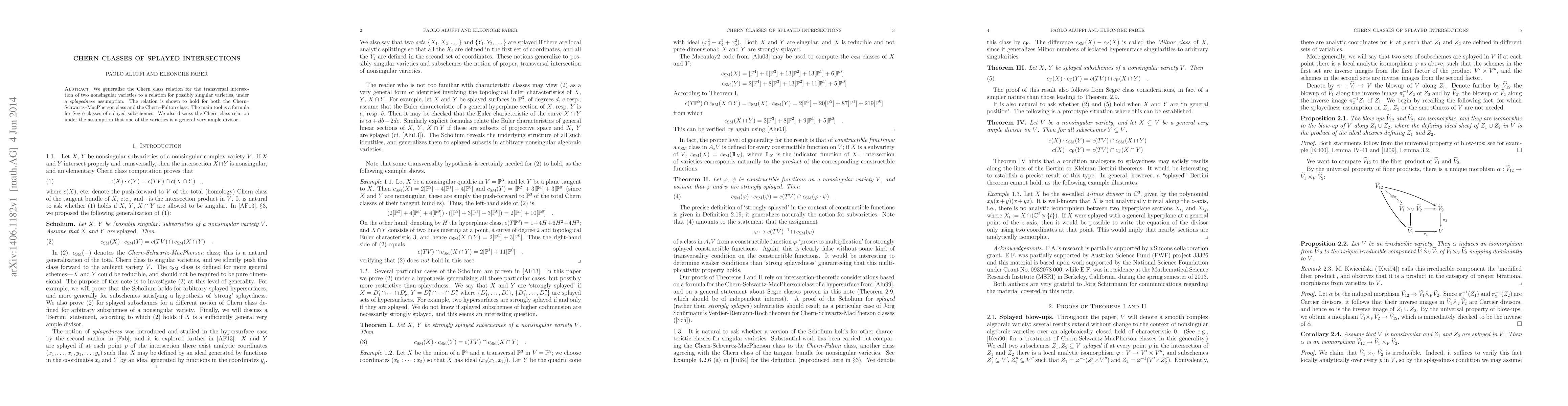 This paper generalizes the Chern class relation for transversal intersections to singular varieties under a 'splayedness' assumption, using Segre classes of splayed subschemes as the main tool. It extends the relation to Chern-Schwartz-MacPherson and Chern-Fulton classes, and discusses cases where one variety is a general very ample divisor.