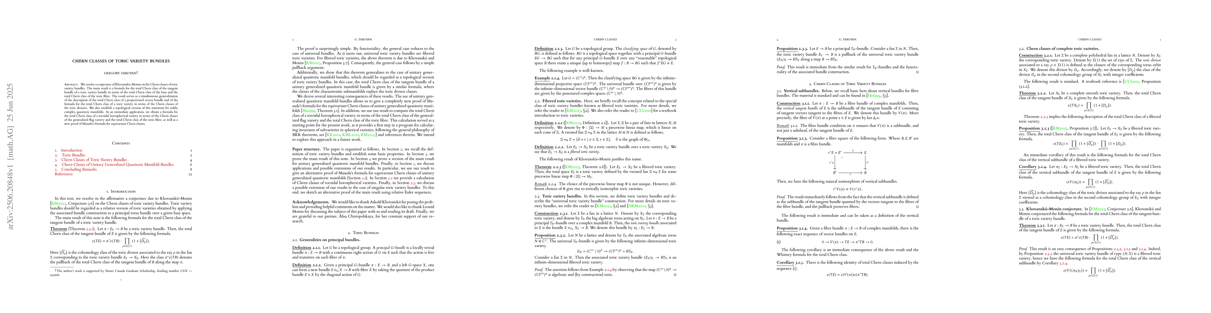 We resolve a conjecture of Khovanskii-Monin on the Chern classes of toric variety bundles. The main result is a formula for the total Chern class of the tangent bundle of a toric variety bundle in terms of the total Chern class of the base and the total Chern class of the toric fibre. The result serves as a simultaneous generalization of the description of the total Chern class of a projectivized vector bundle and of the formula for the total Chern class of a toric variety in terms of the Chern classes of the toric divisors. We also establish a topological version of this statement for stably complex quasitoric manifolds. As an immediate application, we obtain a formula for the total Chern class of a toroidal horospherical variety in terms of the Chern classes of the generalized flag variety and the total Chern class of the toric fibre, as well as a new proof of Masuda's formula for equivariant Chern classes.