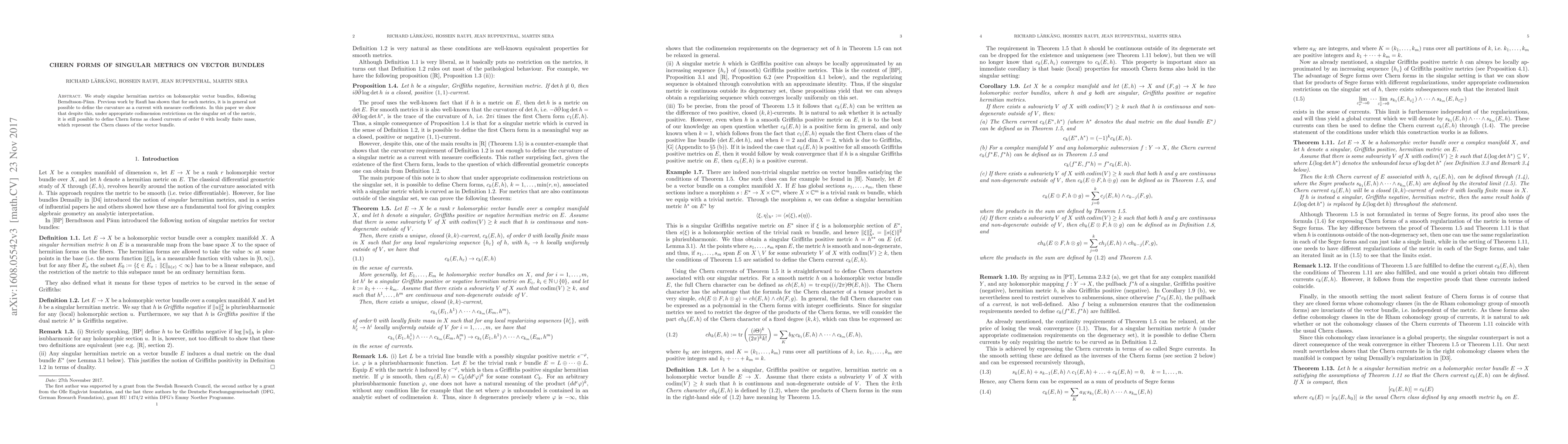 Researchers develop a method to define Chern forms for singular hermitian metrics on holomorphic vector bundles under specific codimension restrictions, enabling the calculation of Chern classes.