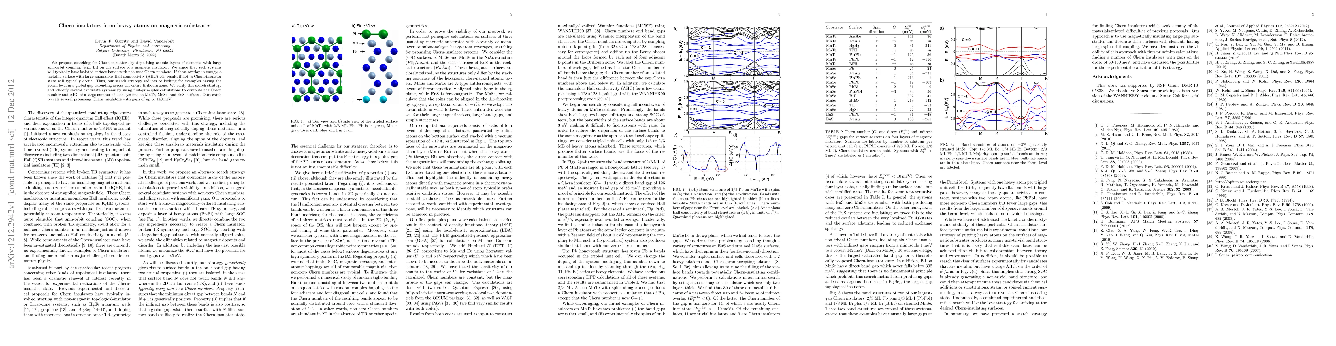 Researchers propose searching for Chern insulators on magnetic substrates by depositing heavy atoms, identifying several promising candidates with gaps up to 140meV.